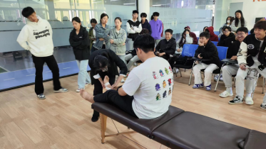 本次演練分為運(yùn)動(dòng)損傷處理演練和應(yīng)急逃生演練(消防、地震)兩個(gè)部分。運(yùn)動(dòng)損傷處理演練由健康學(xué)院溫曉黛老師、魏涵銳老師現(xiàn)場(chǎng)講授運(yùn)動(dòng)損傷的應(yīng)急處理流程,并現(xiàn)場(chǎng)進(jìn)行模擬處置。