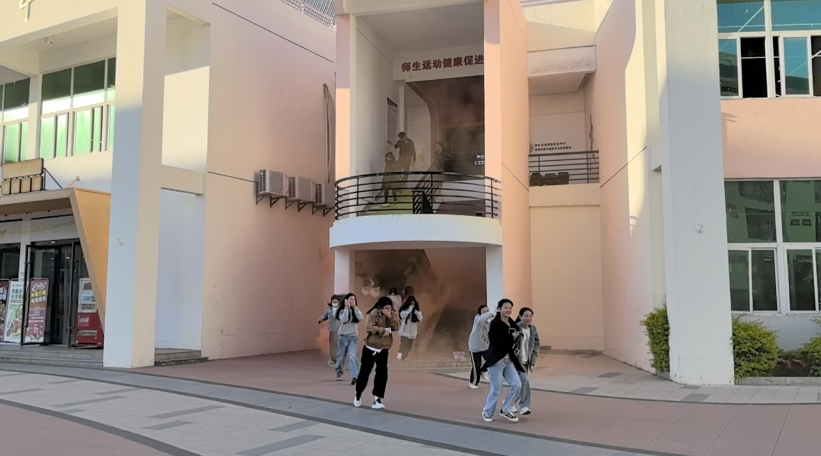 應(yīng)急逃生演練(消防、地震)前,由安全工作處黃興宇副處長(zhǎng)講授介紹滅火器使用注意事項(xiàng)和應(yīng)急逃生演練疏散路線,提醒廣大師生聽從指揮、有序撤離,防止出現(xiàn)推搡、踩踏事故;各位置工作人員提前到崗,認(rèn)真履責(zé),確保撤離安全有序。演練開始,演練工作組接到演練指令后,模擬燃放煙霧,工作人員迅速組織學(xué)生依次從二樓師生運(yùn)動(dòng)健康促進(jìn)中心撤出,按照指定路線,分別有序從樓梯通道內(nèi)側(cè)撤離,做到彎腰、捂口鼻、迅速有序,到仁心食堂門口的空地集合并清點(diǎn)人數(shù)。