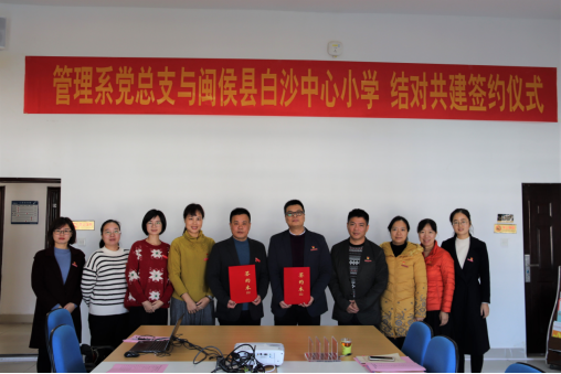 此次管理系黨總支與白沙中心小學(xué)結(jié)對(duì)共建成功簽約,進(jìn)一步推動(dòng)樂(lè)“文明校園+鄉(xiāng)村少年宮”共建項(xiàng)目,形成結(jié)對(duì)共建工作的長(zhǎng)效機(jī)制,讓共建成果服務(wù)鄉(xiāng)村振興,提升農(nóng)村未成年人思想道德建設(shè)工作水平。今后,雙方將堅(jiān)持黨建引領(lǐng)、互相支持、共同進(jìn)步、共謀共建的原則,以“激發(fā)黨建新活力,實(shí)現(xiàn)雙贏齊發(fā)展”為目標(biāo),實(shí)現(xiàn)資源共享、優(yōu)勢(shì)互補(bǔ)、全面發(fā)展、共同提高,以共建促發(fā)展,構(gòu)建新的有機(jī)互聯(lián)的組織系統(tǒng),不斷提高共建工作整體效應(yīng)。