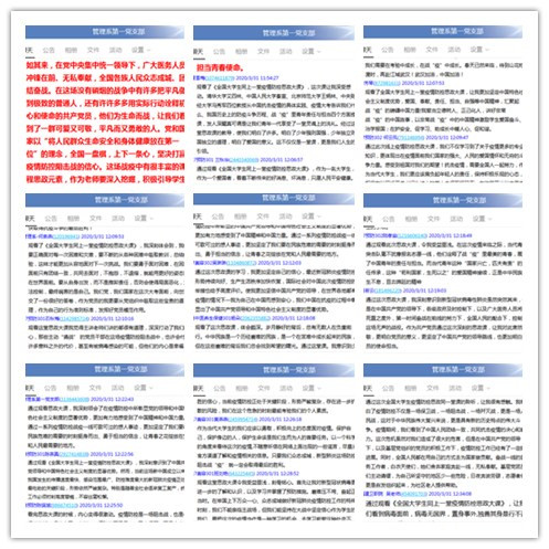 為認真學習在疫情阻擊戰(zhàn)中發(fā)揮積極作用的先進典型,深刻認識中國抗疫彰顯的中國共產(chǎn)黨領(lǐng)導和中國特色社會主義制度的顯著優(yōu)勢,2020年3月31日,管理系第一黨支部開展全體黨員同上“全國大學生同上一堂疫情防控思政大課”主題黨日活動,并積極發(fā)表觀后感。