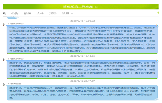 5月16日,管理系第二黨支部借助學(xué)習(xí)強國平臺學(xué)習(xí)了十九屆四中全會精神—中國制度十三講中的第四講:堅持和完善中國特色社會主義行政體制,構(gòu)建職責(zé)明確、依法行政的政府治理體系。