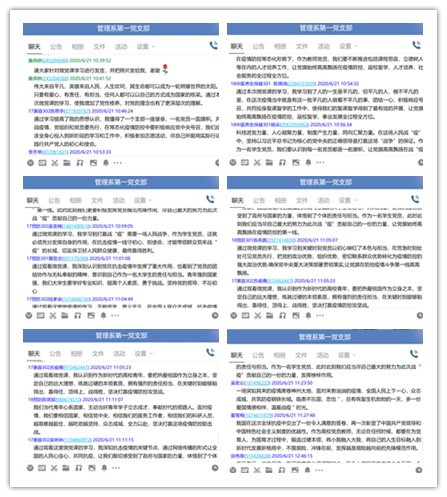 2020年6月19日上午9點(diǎn),管理系第一黨支部全體黨員在線觀看“黨旗飄揚(yáng)筑牢紅色防火墻”高校黨組織戰(zhàn)“疫”示范微黨課,并在線交流觀看體會。