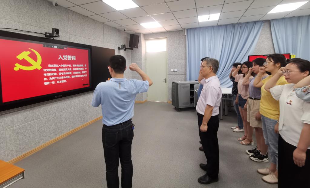 國際歌聲聲在耳,入黨誓詞句句在心。全體黨員唱響《國際歌》,重溫入黨誓詞,40位新黨員同步進(jìn)行線上入黨宣誓。