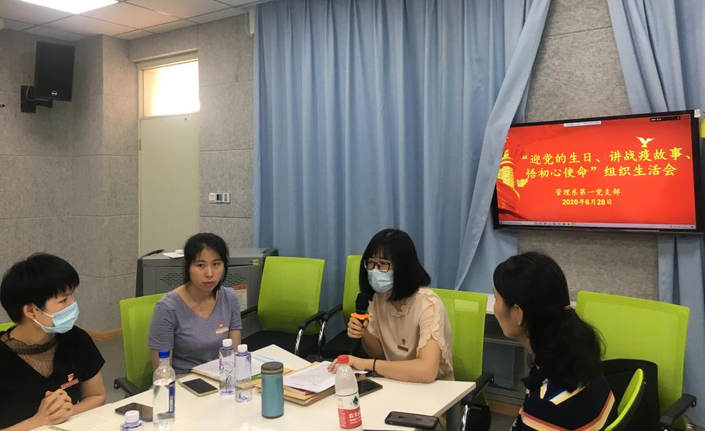 講故事,樹典型,悟初心,擔(dān)使命。管理系兩個(gè)黨支部召開專題組織生活會(huì),會(huì)前組織學(xué)習(xí)黨章黨規(guī),學(xué)習(xí)習(xí)近平總書記關(guān)于疫情防控的重要講話、重要指示批示精神。會(huì)上,同志們談學(xué)習(xí)體會(huì),講身邊的戰(zhàn)疫故事,對(duì)照優(yōu)秀標(biāo)桿,認(rèn)真查找自身存在的差距和不足,補(bǔ)短板,強(qiáng)弱項(xiàng)。大家學(xué)起來、講起來、做起來,在本職崗位上發(fā)揮共產(chǎn)黨員的先鋒模范作用,抓好常態(tài)化疫情防控下的教育教學(xué)工作。