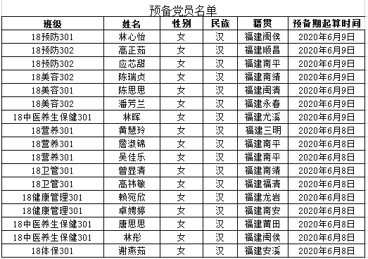 經(jīng)黨支部表決、黨總支審批、中共福建衛(wèi)生職業(yè)技術(shù)學(xué)院委員會(huì)批準(zhǔn),同意教師黨員莊海林同志按期轉(zhuǎn)正;同意接收林心怡等17位同志為中共預(yù)備黨員,預(yù)備期一年,預(yù)備期從支部大會(huì)通過之日算起。