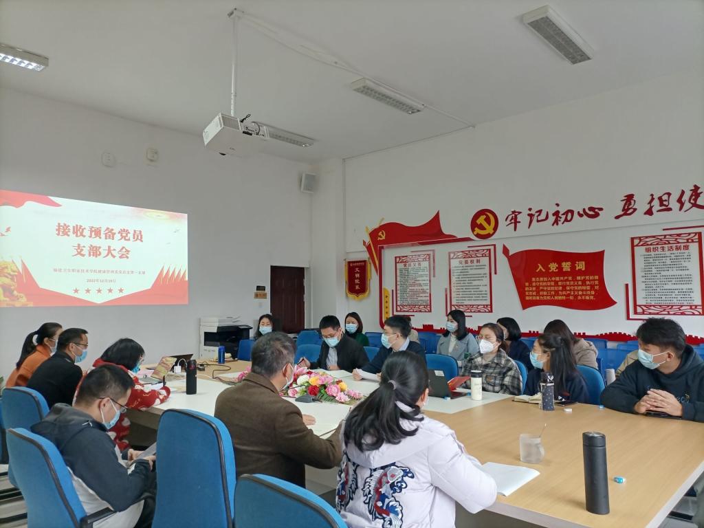2022年12月15日下午,健康管理系黨總支第一支部召開預(yù)備黨員接收大會(huì)。會(huì)議由健康管理系黨總支第一支部書記林麒同志主持,對(duì)李其鏗1名發(fā)展對(duì)象接收為預(yù)備黨員進(jìn)行討論和表決。