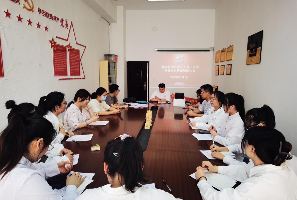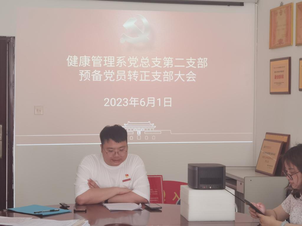 2023年6月1日,健康管理系黨總支第二黨支部在圖書館會議室舉行預(yù)備黨員轉(zhuǎn)正大會。