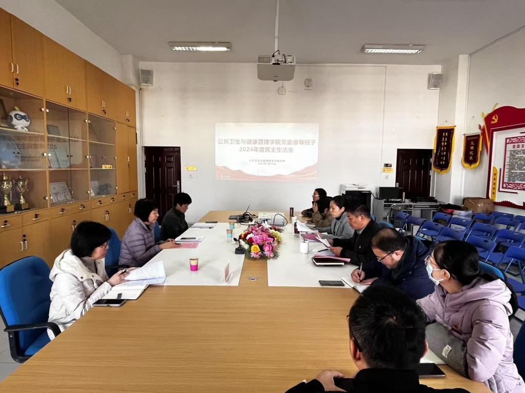 1月16日下午,公共衛(wèi)生與健康管理學(xué)院黨委領(lǐng)導(dǎo)班子2024年度民主生活會在學(xué)院會議室召開,校第三督導(dǎo)組到會指導(dǎo),學(xué)院黨委領(lǐng)導(dǎo)班子全體成員參加會議,會議由學(xué)院黨委書記龔海蓉主持。