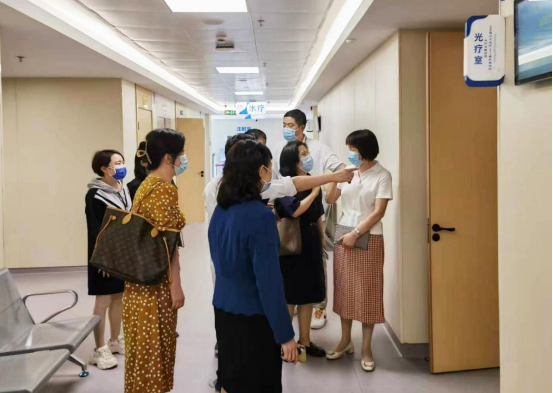 李美華一行在福州市皮膚病防治院副院長(zhǎng)黃劍清的帶領(lǐng),參觀了醫(yī)學(xué)美容中心、中醫(yī)美容科等相關(guān)科室,深入了解了醫(yī)院發(fā)展情況、醫(yī)學(xué)美容技術(shù)專業(yè)學(xué)生實(shí)習(xí)情況等。健康管理系主任莊海林介紹了我校專業(yè)建設(shè)現(xiàn)狀和特色優(yōu)勢(shì),并希望加強(qiáng)校院合作力度,培養(yǎng)更多優(yōu)秀的醫(yī)美專業(yè)人才。
