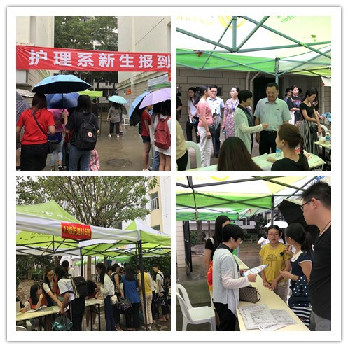 報(bào)到當(dāng)天,結(jié)合護(hù)理系的實(shí)際情況,將報(bào)到處設(shè)置在5號學(xué)生公寓樓下,同時(shí),在過道外墻和各班報(bào)到辦公桌上均張貼排班名單、報(bào)到流程圖、學(xué)費(fèi)說明等。在現(xiàn)場,系部領(lǐng)導(dǎo)老師耐心回答新生和家長的各種咨詢,介紹護(hù)理系辦學(xué)特色和相關(guān)專業(yè)的基本情況,并及時(shí)為困難學(xué)生開設(shè)“綠色通道”服務(wù);志愿者們帶著新生完成入學(xué)的各項(xiàng)手續(xù)。護(hù)理系熱情的志愿者,慈祥的老師以及一切人性化的服務(wù),令遠(yuǎn)道而來的學(xué)生和隨行的家長感到由衷的滿意。使新生及家長第一時(shí)間感受到學(xué)校的溫暖,為新生和家長留下美好的印象。