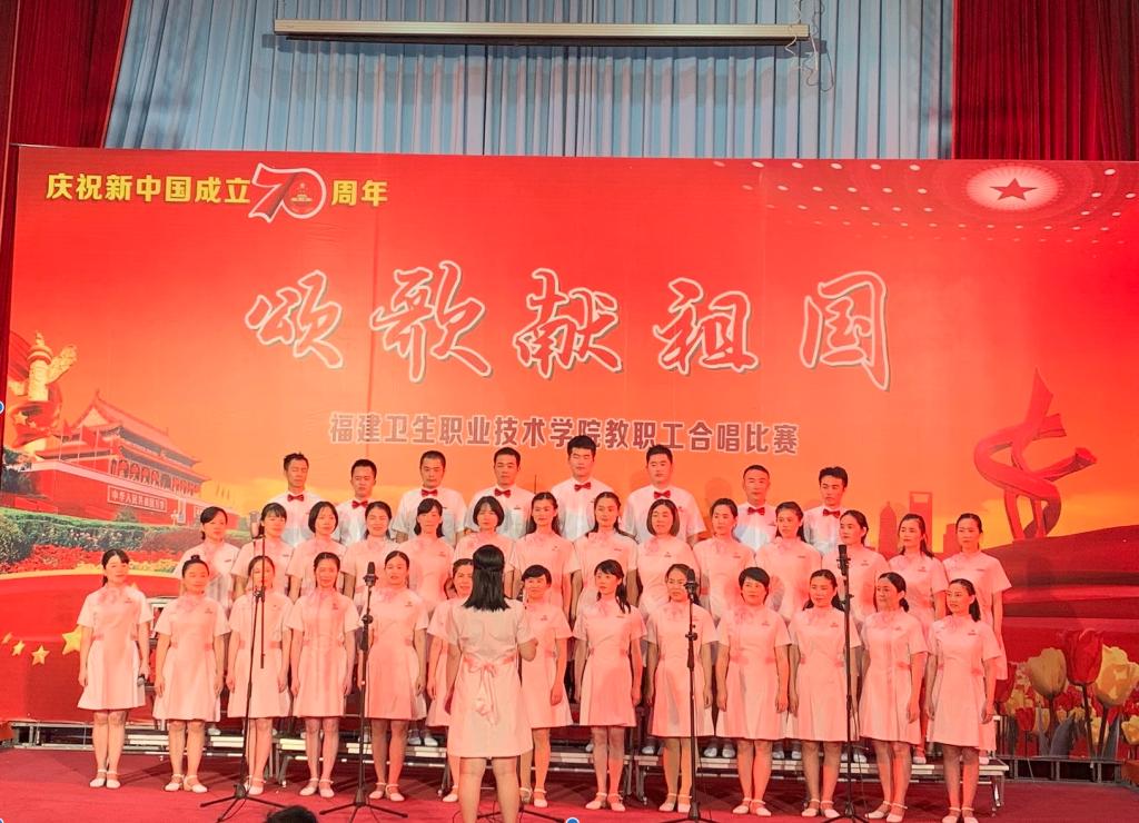 嘹亮的歌聲,喚起中華兒女的自豪和向往;優(yōu)美的旋律,奏響中華民族偉大復(fù)興的壯麗樂章。9月26日,“頌歌獻(xiàn)祖國”福建衛(wèi)生職業(yè)技術(shù)學(xué)院慶祝新中國成立70周年教職工合唱比賽在學(xué)術(shù)廳拉開帷幕,由各部門各系部組成的8支參賽隊(duì)伍用動聽的歌聲向祖國獻(xiàn)上最美好的祝福。經(jīng)過激烈角逐,護(hù)理系代表隊(duì)合唱的歌曲《彈起我心愛的土琵琶》、《年輕的朋友來相會》榮獲一等獎。