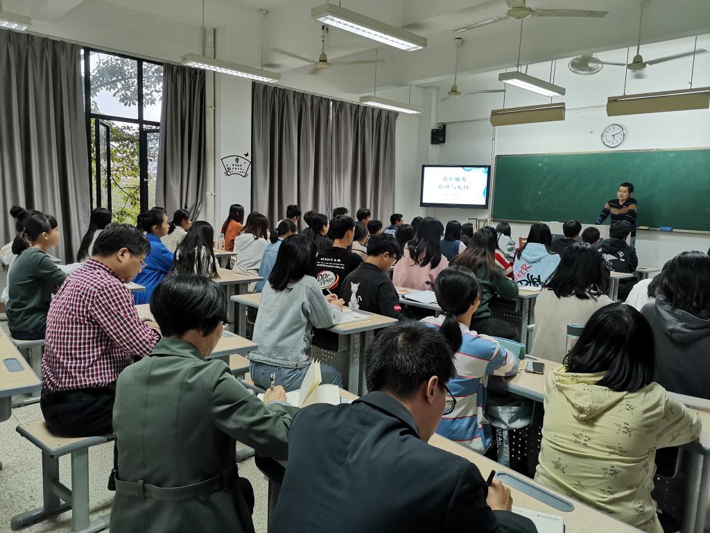 在教學(xué)樓208教室,蘇院長(zhǎng)認(rèn)真聆聽(tīng)了護(hù)理系王延昇老師的《老年服務(wù)倫理與禮儀》,課后與19老年保健與管理301班49名同學(xué)面對(duì)面坐在一起進(jìn)行互動(dòng)交流。同學(xué)們首先向?qū)W院及領(lǐng)導(dǎo)們對(duì)老年保健管理專(zhuān)業(yè)學(xué)生的關(guān)心與厚愛(ài)表示衷心的感謝,其次匯報(bào)來(lái)校后的學(xué)習(xí)、生活、參加活動(dòng)情況,并對(duì)學(xué)校的運(yùn)動(dòng)場(chǎng)所建設(shè)、宿舍維修、后勤保障等方面提出自己的想法和建議。蘇院長(zhǎng)認(rèn)真聽(tīng)取每位同學(xué)的發(fā)言,對(duì)同學(xué)提出的疑義一一的進(jìn)行解答,對(duì)同學(xué)提出的意見(jiàn)建議積極的采納,并向同學(xué)們介紹了運(yùn)動(dòng)場(chǎng)建設(shè)、環(huán)校跑道等學(xué)院發(fā)展建設(shè)情況以及老年保健與管理專(zhuān)業(yè)的美好前景,和同學(xué)們分享了自己學(xué)習(xí)和工作活感悟,最后對(duì)同學(xué)提出了殷切期望,希望同學(xué)們珍惜韶華,系好人生第一??圩?,做到德智體美全面發(fā)展,成長(zhǎng)為合格的社會(huì)主義建設(shè)者和接班人。蘇院長(zhǎng)強(qiáng)調(diào),大學(xué)生要培養(yǎng)學(xué)習(xí)的興趣,掌握科學(xué)的學(xué)習(xí)方法,注重自學(xué),廣泛涉獵,提高自己的綜合素養(yǎng)。要敢于面對(duì)挫折,克服困難,敢于吃苦,砥礪前行。要多參加各種實(shí)踐活動(dòng),在實(shí)踐中鍛煉自己、完善自己。要堅(jiān)定理想信念,樹(shù)立正確的人生觀、價(jià)值觀和世界觀,努力成長(zhǎng)為擔(dān)當(dāng)民族復(fù)興大任的時(shí)代新人,為實(shí)現(xiàn)中華民族偉大復(fù)興的中國(guó)夢(mèng)做出貢獻(xiàn)。