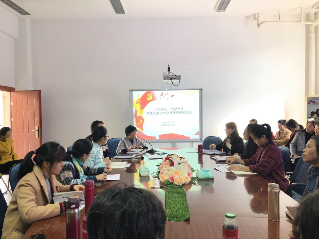 2019年12月26日,護(hù)理系黨總支于護(hù)理系301會議室召開“不忘初心、牢記使命”專題民主生活會情況通報會,護(hù)理系黨總支成員、各支部委員參加了會議,會議由護(hù)理系黨總支謝濤書記主持。