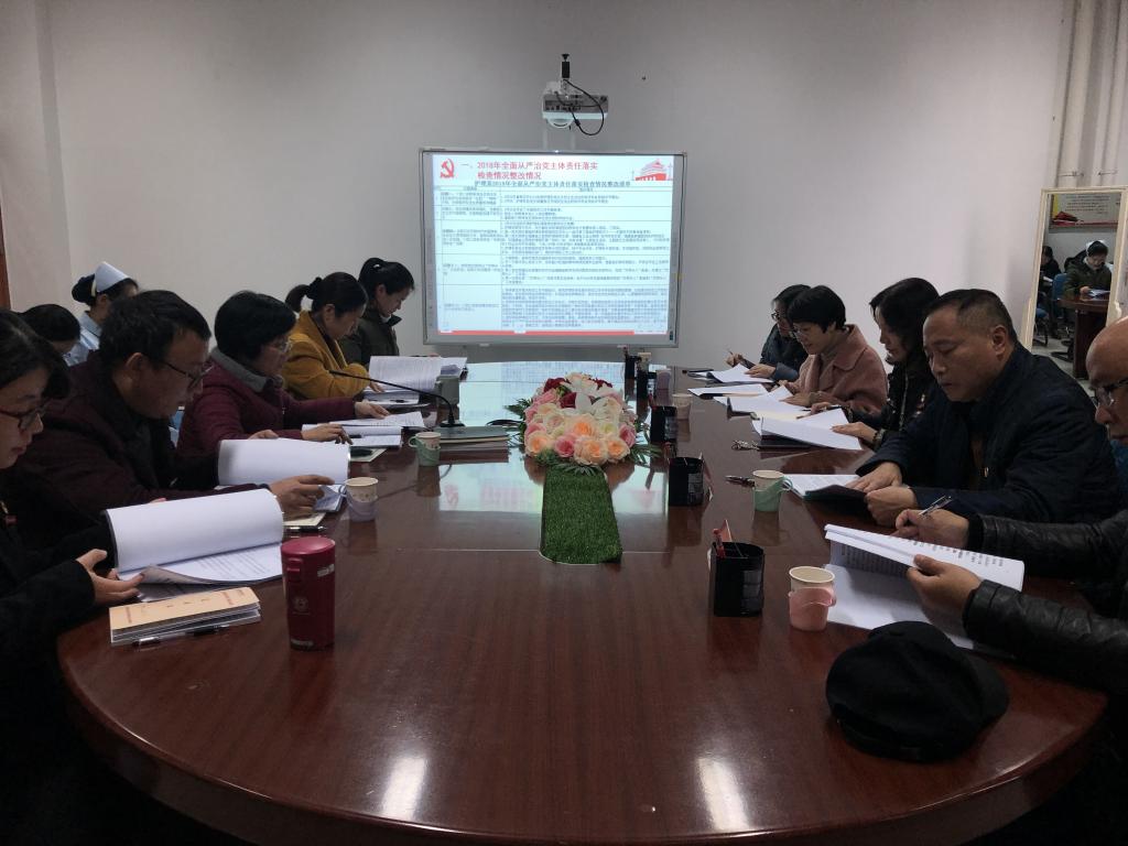 會上,謝濤書記從2018年全面從嚴(yán)治黨主體責(zé)任落實檢查情況整改情況、2019年全面從嚴(yán)治黨主體責(zé)任落實情況、達(dá)標(biāo)創(chuàng)星建設(shè)情況、對標(biāo)爭先創(chuàng)建情況、黨建工作重點任務(wù)實施細(xì)則常態(tài)化項目落實情況、落實意識形態(tài)主體責(zé)任情況、總結(jié)存在不足,強化整改措施等七個方面進(jìn)行匯報。