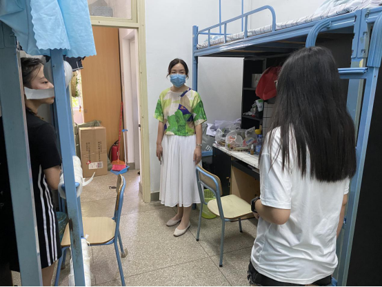 在深入學生宿舍過程中,李美華副書記向?qū)W生細致了解返校后生活狀況以及學生實習前崗前培訓情況,并詢問學生的有無需要學校解決的困難,并且對學生做好疫情防控進行了強調(diào),叮囑同學們注意戴好口罩做好個人防護。