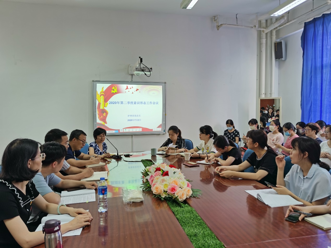 2020年7月2日,護理系黨總支于護理系301會議室召開2020年第二季度意識形態(tài)工作會議,會議由護理系黨總支書記謝濤主持,護理系全體教職工參加會議。