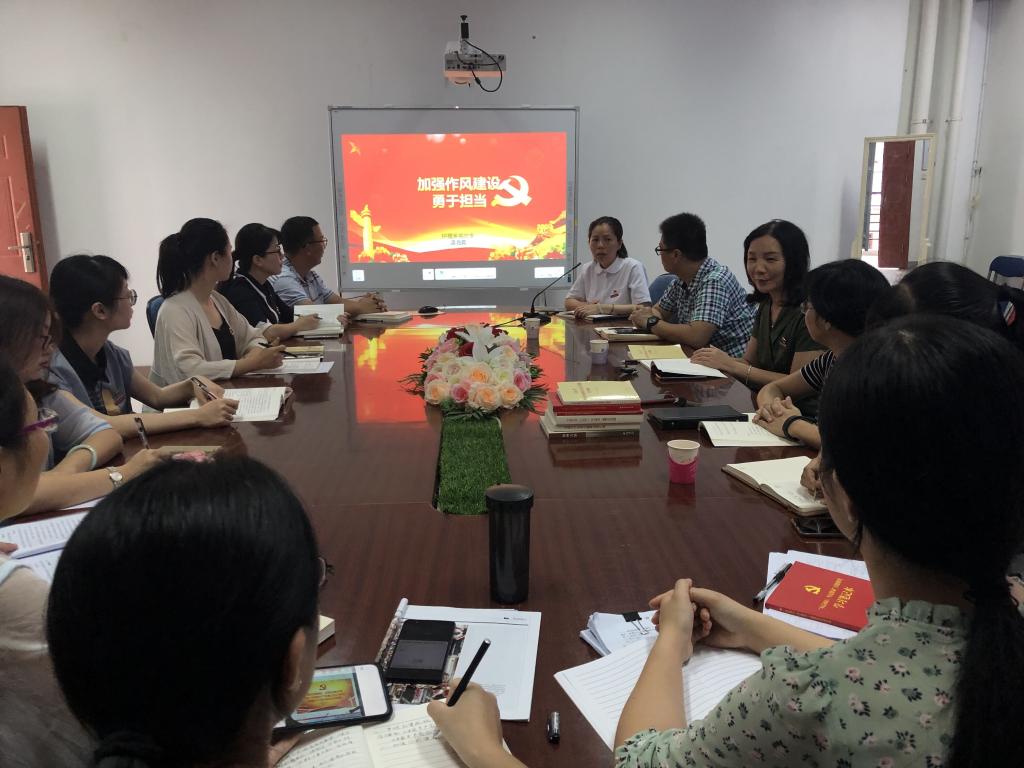 龔海蓉同志結(jié)合護(hù)理系調(diào)研中發(fā)現(xiàn)的上學(xué)期期末考試監(jiān)考中我系兩位教師遲到、缺席造成不良影響,受到學(xué)院通報(bào)處理的問題展開,闡述了“加強(qiáng)作風(fēng)建設(shè),勇于擔(dān)當(dāng)”的意義,講述了如何不忘初心,牢記使命,主動(dòng)擔(dān)當(dāng)作為,踐行使命。