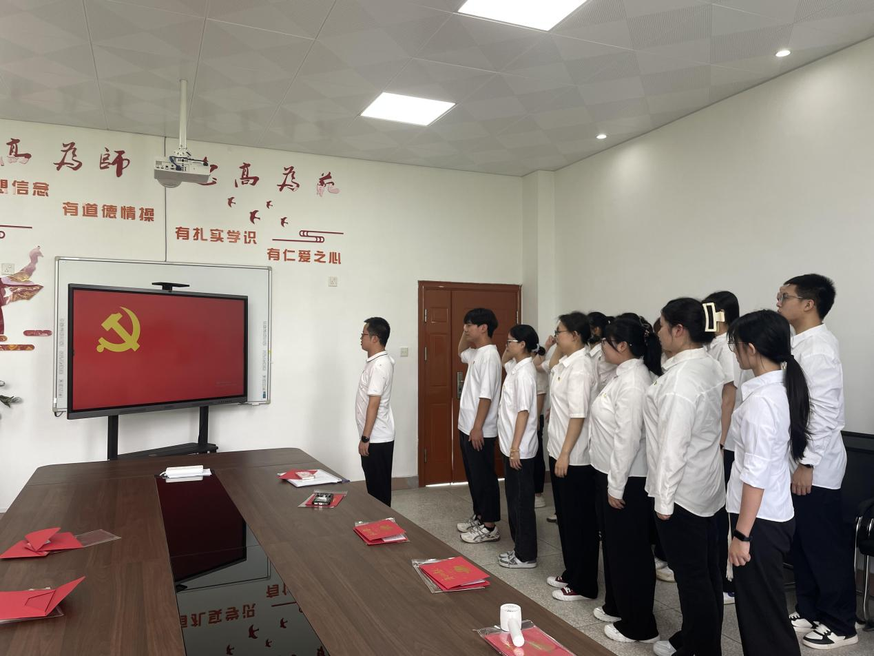 入黨誓詞,是黨員對(duì)黨和人民作出的莊嚴(yán)承諾。習(xí)近平總書記指出,入黨誓詞字?jǐn)?shù)不多,記住并不難,難的是終身堅(jiān)守。每個(gè)黨員要牢記入黨誓詞,經(jīng)常加以對(duì)照,堅(jiān)定不移,終生不渝?!拔抑驹讣尤胫袊?guó)共產(chǎn)黨,擁護(hù)黨的綱領(lǐng),遵守黨的章程,履行黨員義務(wù),執(zhí)行黨的決定,嚴(yán)守黨的紀(jì)律……”全體黨員在領(lǐng)誓人的帶領(lǐng)下舉起右臂共同宣誓,重溫入黨誓詞,再一次接受了入黨誓詞的洗禮,堅(jiān)定了共產(chǎn)黨人的初心和使命。