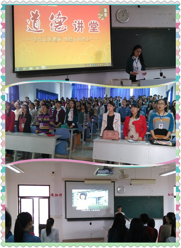 為深入學(xué)習(xí)貫徹黨的十八大精神,扎實(shí)推進(jìn)社會(huì)主義核心價(jià)值體系建設(shè),提升師生道德素質(zhì)和校園文明程度,引導(dǎo)廣大學(xué)生遵守公共道德,提升道德素質(zhì),共建和諧校園,護(hù)理系于2014年11月25日下午在教學(xué)樓209 舉辦了以“講道德、倡善行、樹新風(fēng),建設(shè)魅力校園”為主題的道德講堂活動(dòng)。護(hù)理系黨總支謝濤書記、各班級輔導(dǎo)員以及護(hù)理系學(xué)生參加了本次活動(dòng)。