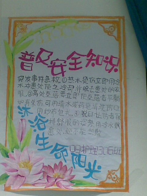 2011年3月,為進(jìn)一步強(qiáng)化廣大學(xué)生安全防范意識(shí),預(yù)防和減少各類(lèi)安全事故的發(fā)生,努力創(chuàng)建安全、文明、健康、和諧的校園氛圍,促進(jìn)同學(xué)們?nèi)娼】蛋l(fā)展。在護(hù)理系團(tuán)總支學(xué)生會(huì)的組織和帶領(lǐng)下,各團(tuán)支部都積極開(kāi)展了以 “大學(xué)生安全教育”為主題的系列活動(dòng)。