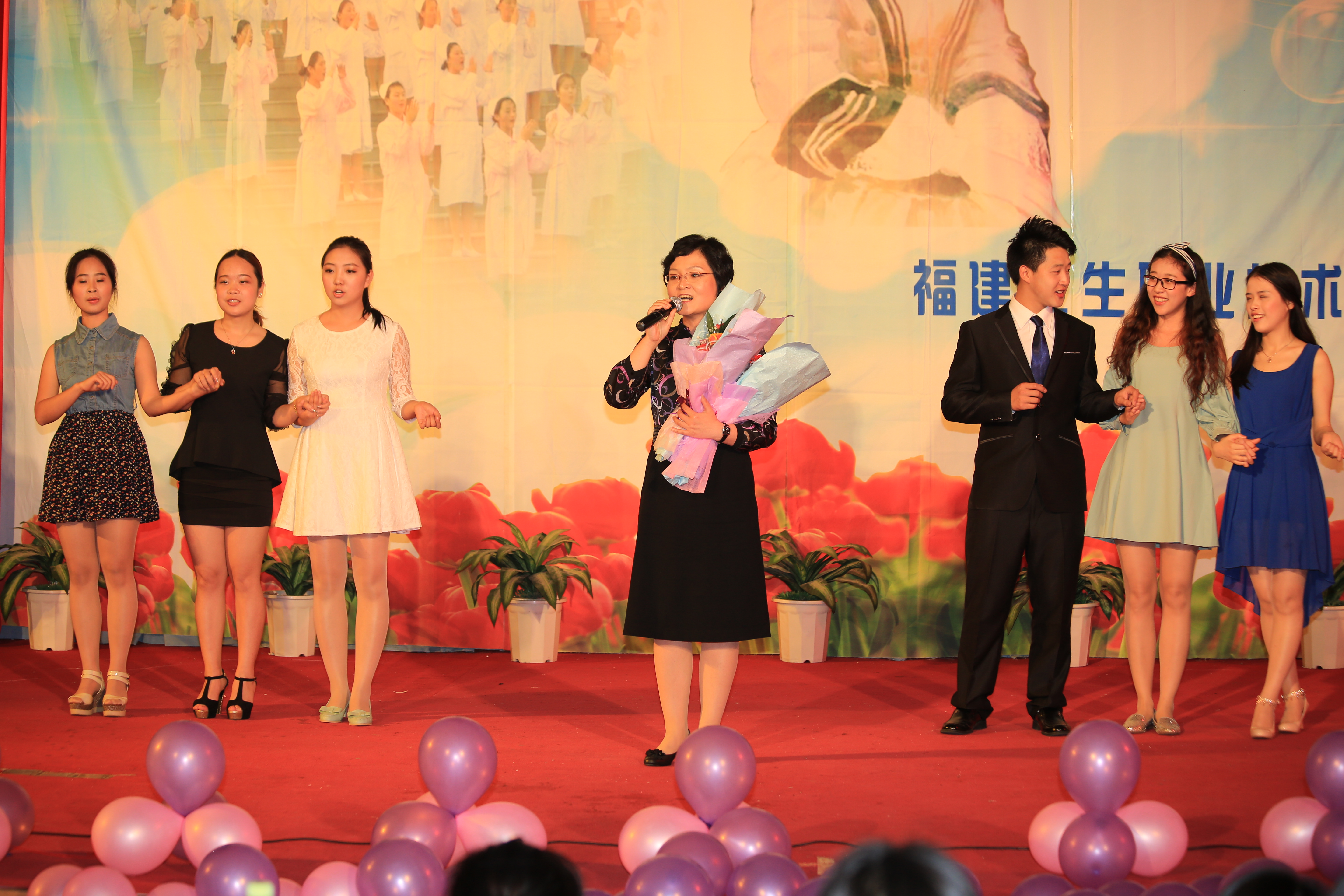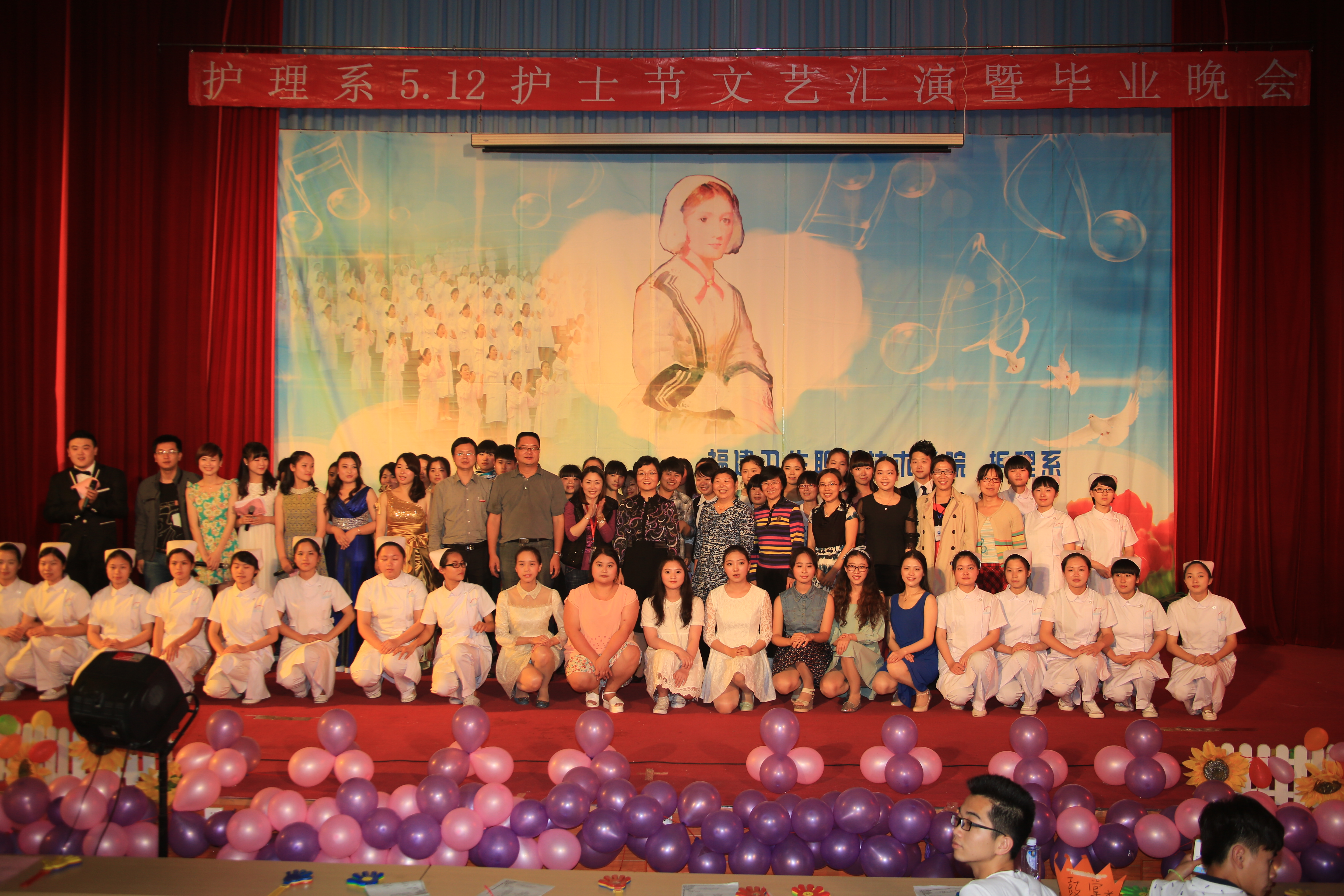 5月12日晚,護理系5.12護士節(jié)“我心飛翔”文藝匯演暨畢業(yè)晚會在學術廳隆重舉行。蒞臨本次晚會的嘉賓有院黨委林春明書記、郭素華院長、魏立娜副院長、財務處吳香書處長、學工處葉海副處長、院團委宋維副書記、護理系黨總支謝濤書記、王珊珊副主任、各系部團總支書記、院團委王燁老師及護理系全體輔導員。