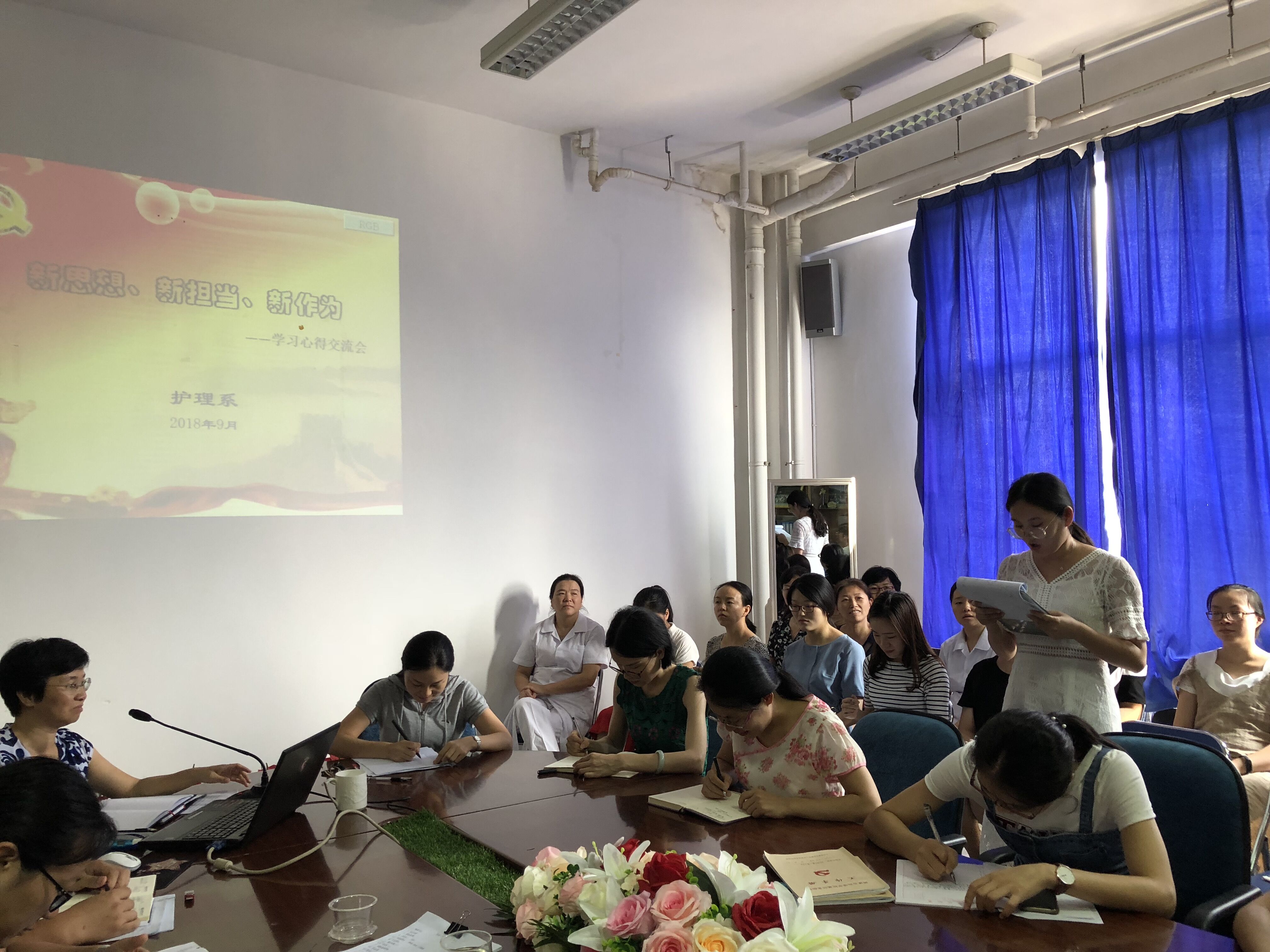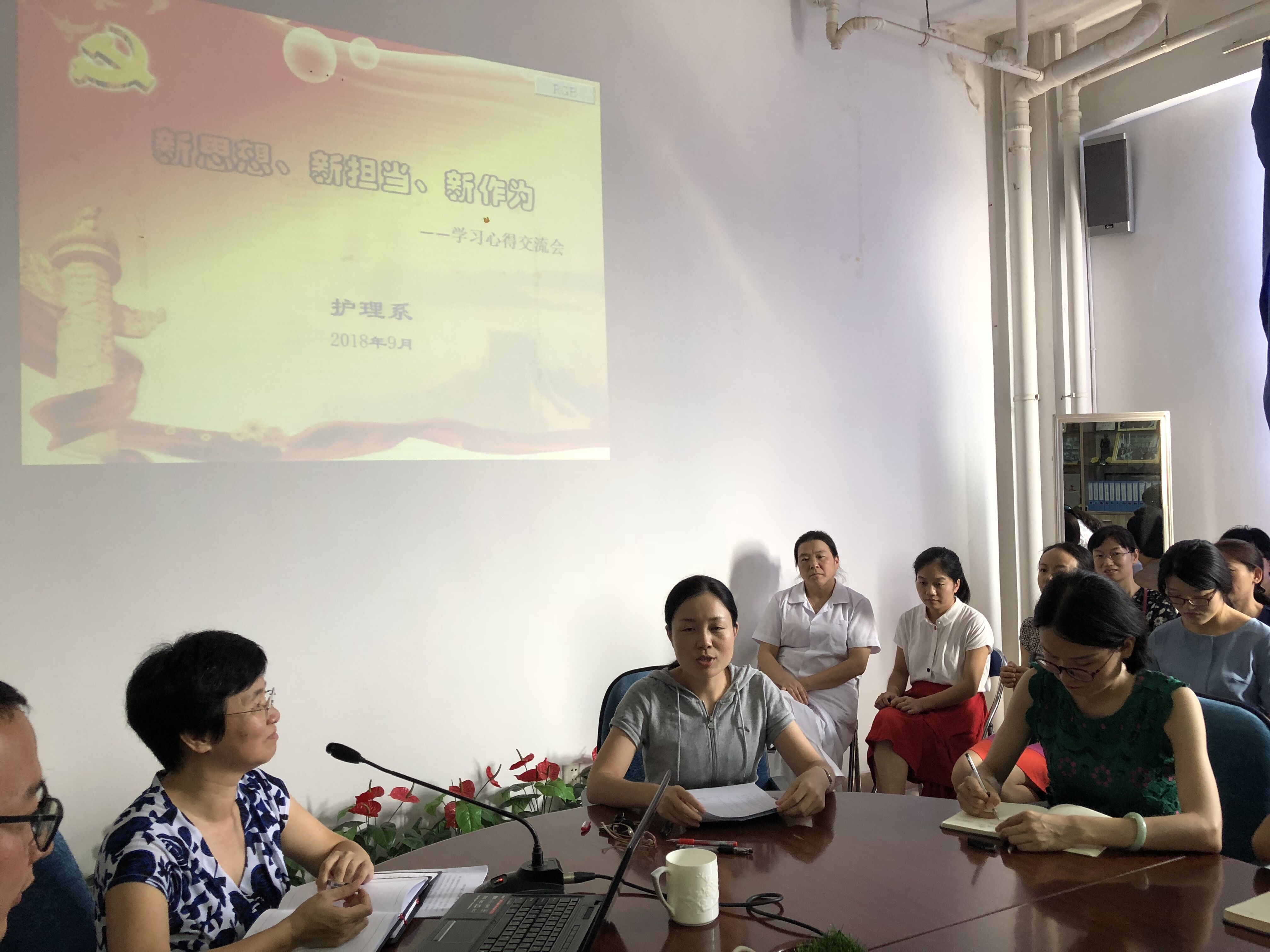 為進一步學懂弄通做實習近平新時代中國特色社會主義思想,掀起新思想“大學習、大宣講、大調(diào)研”熱潮,我系于9月6日下午在護理系會議室召開主題為“新思想、新?lián)?、新作為”的學習心得交流會,會議由護理系黨總支書記謝濤同志主持。