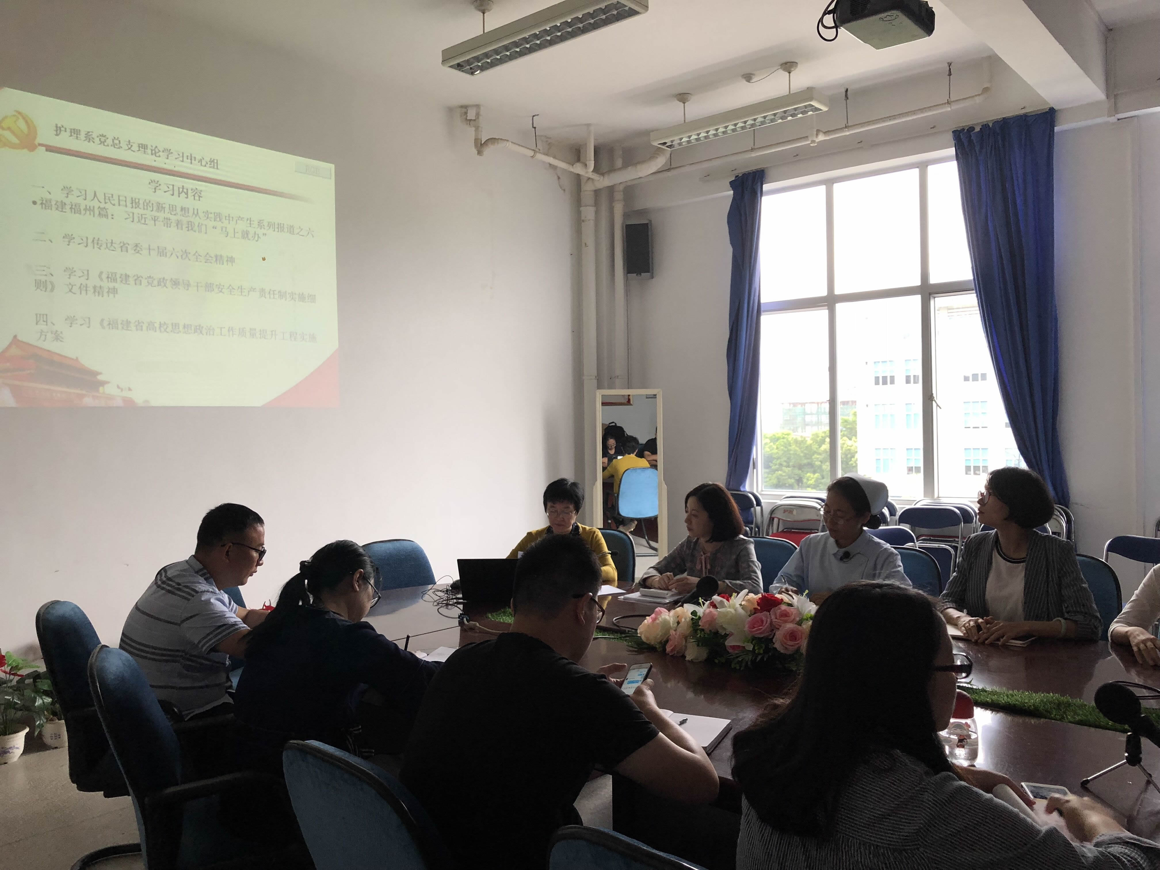 10月11日,護(hù)理系黨總支中心組召開理論學(xué)習(xí)會(huì)議。黨總支謝濤書記主持會(huì)議。會(huì)議學(xué)習(xí)了人民日?qǐng)?bào)的新思想從實(shí)踐中產(chǎn)生系列報(bào)道之六?福建福州篇——習(xí)近平帶著我們“馬上就辦”內(nèi)容,傳達(dá)了省委十屆六次全會(huì)精神,同時(shí)還學(xué)習(xí)了《福建省黨政領(lǐng)導(dǎo)干部安全生產(chǎn)責(zé)任制實(shí)施細(xì)則》、《福建省高校思想政治工作質(zhì)量提升工程實(shí)施方案》文件精神。