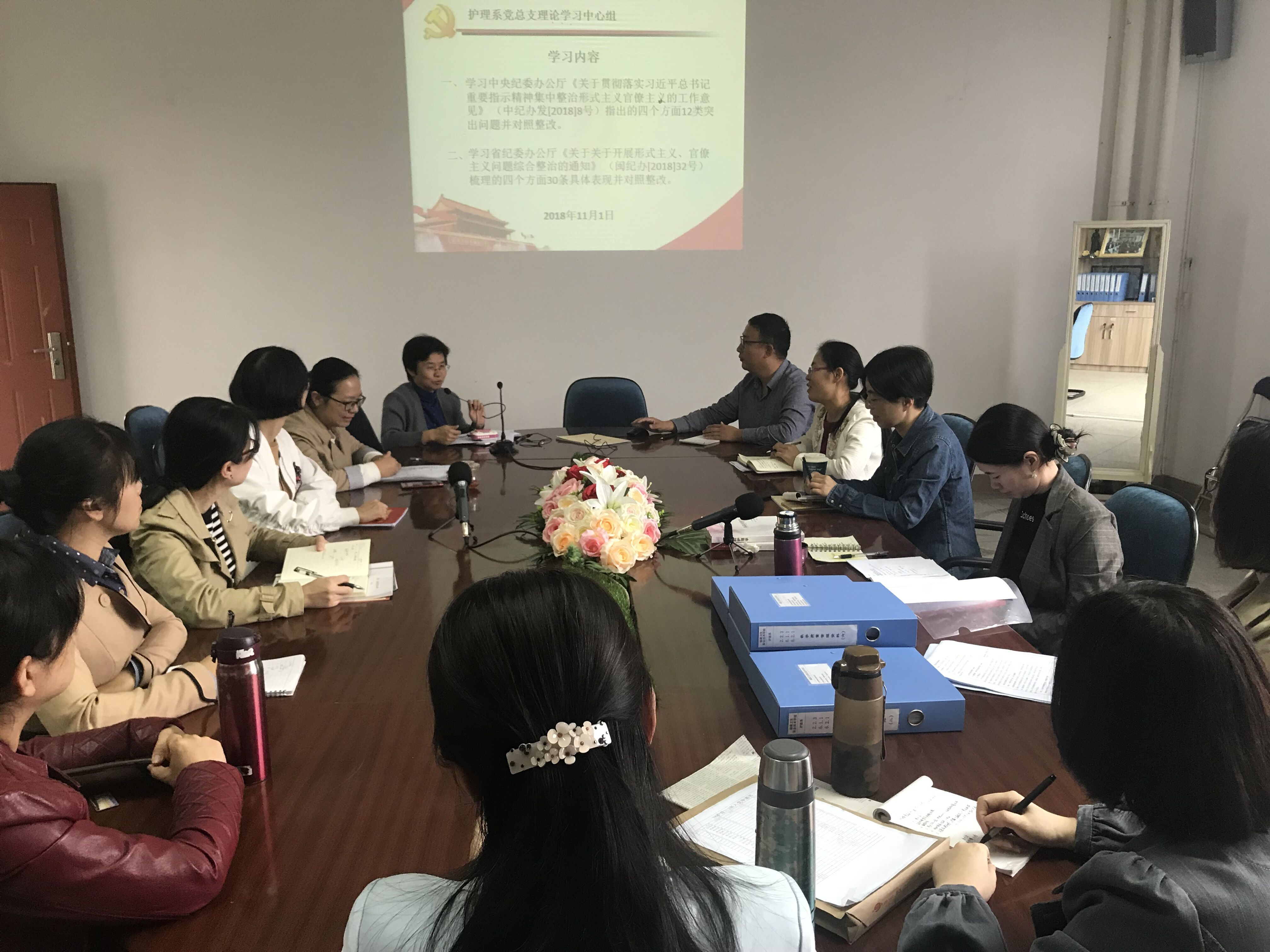 護理系黨總支理論學習中心組組織學習整治形式主義、官僚主義工作的相關(guān)文件精神