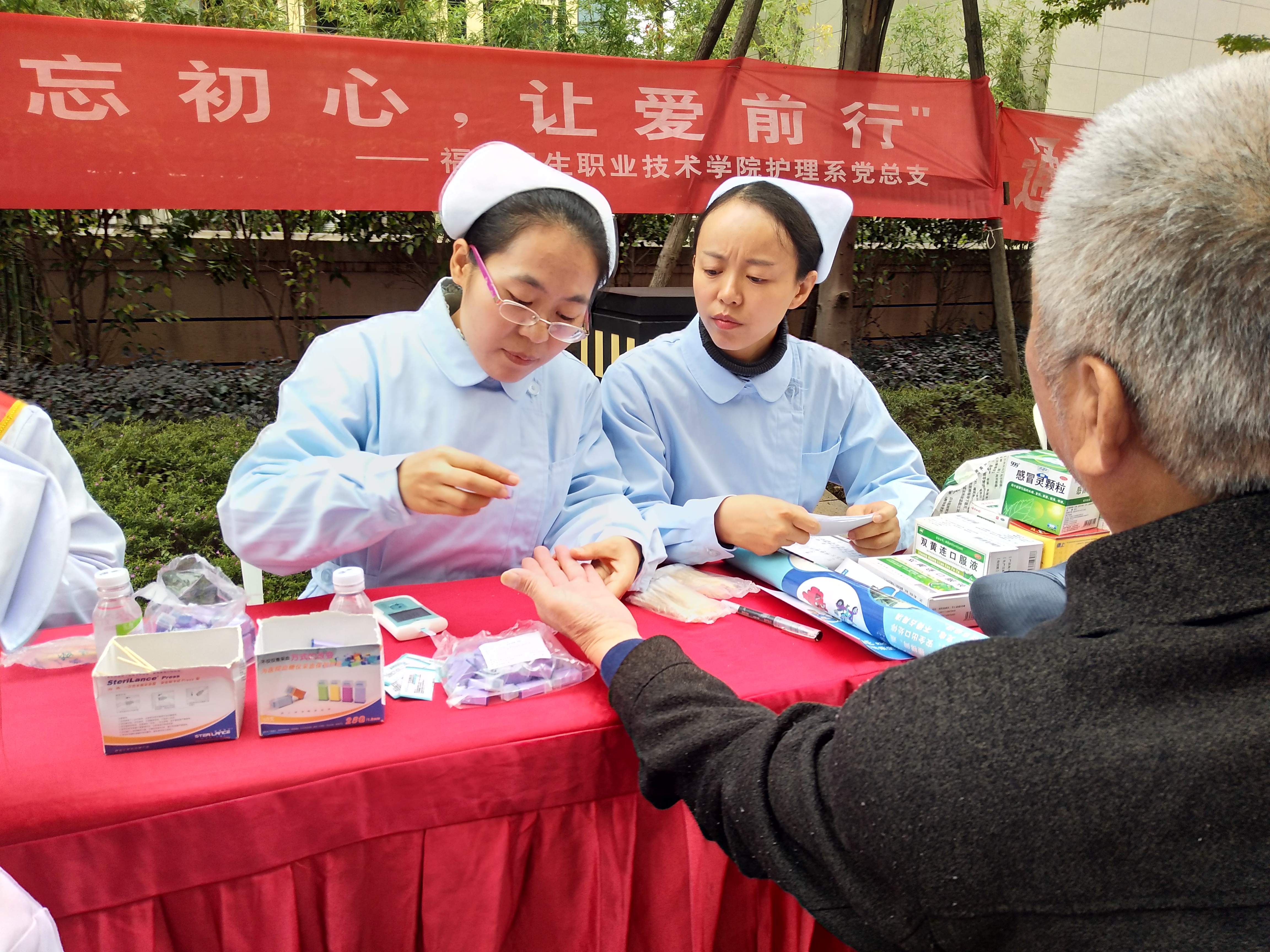 為全面貫徹黨的十九大和十九屆二中、三中全會精神,認真貫徹全國教育大會精神,培育踐行社會主義核心價值觀,培養(yǎng)德智體美勞全面發(fā)展的社會主義建設(shè)者和接班人,護理黨總支帶領(lǐng)系團總支于2018年12月22日上午在閩侯縣荊溪鎮(zhèn)中鐵城社區(qū)開展“不忘初心,讓愛前行”為主題的義診活動。參加此次活動的有護理系第一黨支部書記賈箐箐、護理系第二黨支部書記陳雪珍、護理系團總支副書記林飛準,以及張璟、張?zhí)煳牡炔糠贮h員教師、入黨積極分子、共青團員等志愿者。