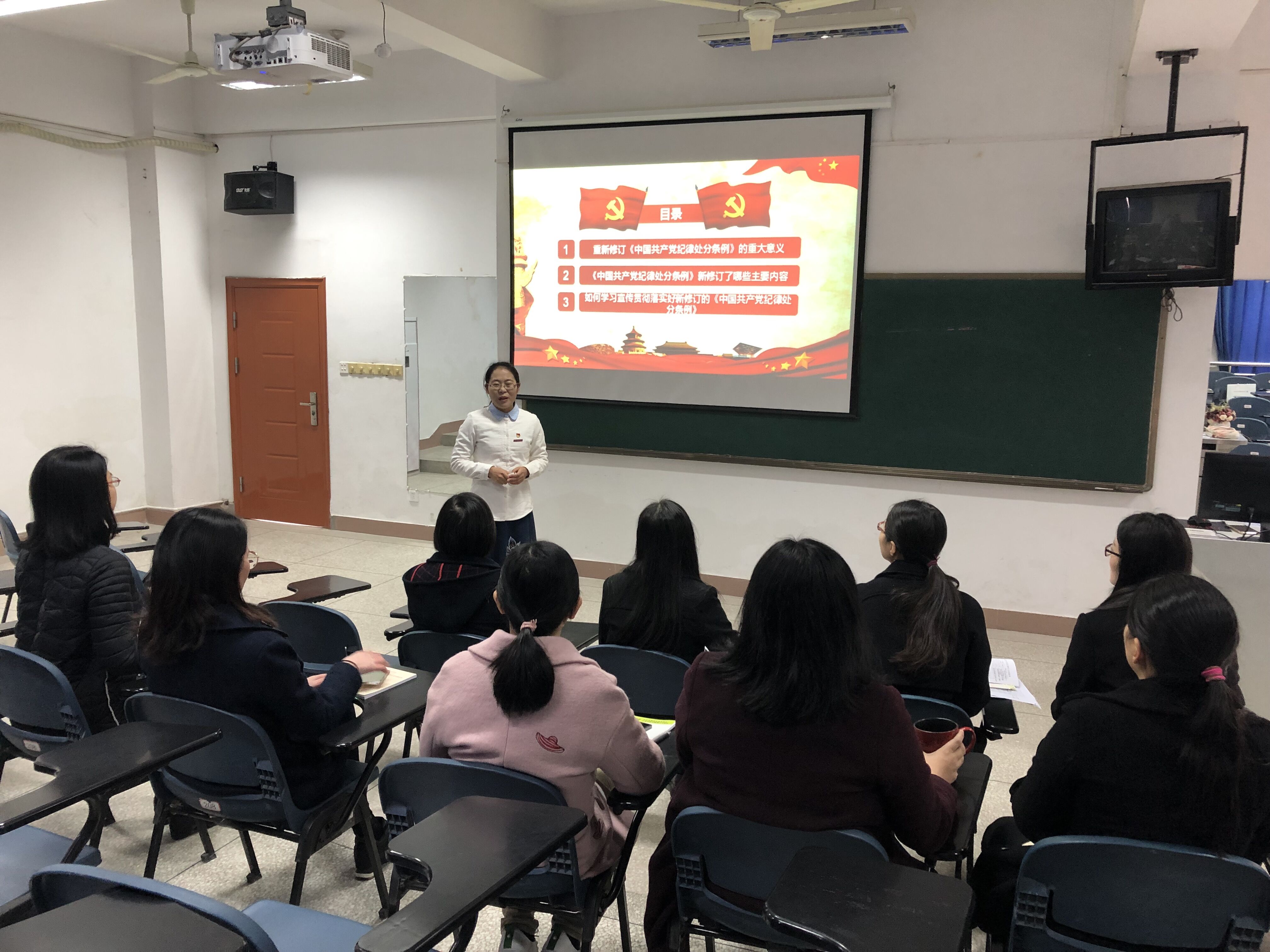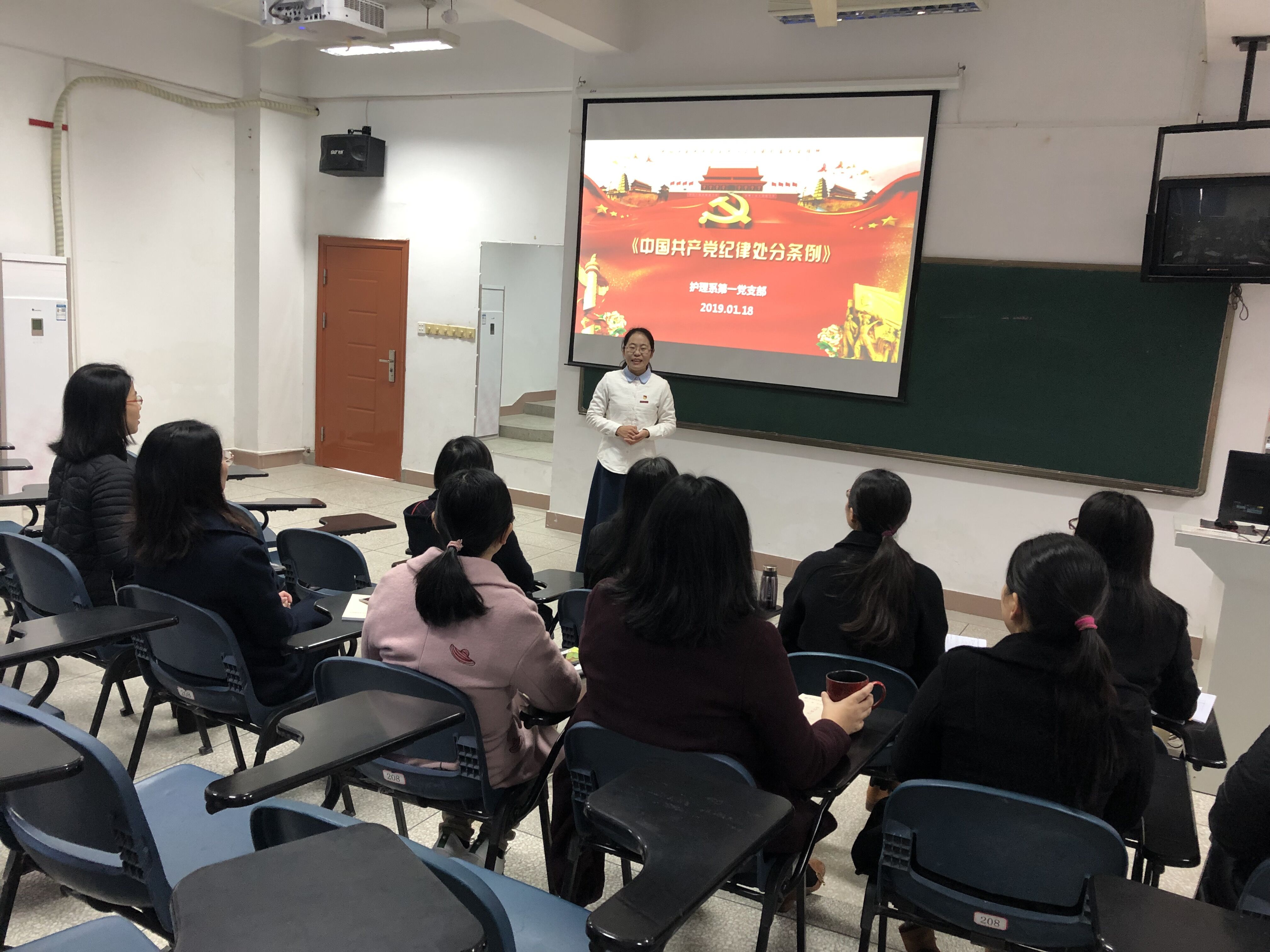 護(hù)理系第一黨支部于2019年1月18日召開支部黨員大會(huì),組織全體黨員集中學(xué)習(xí)《中國共產(chǎn)黨紀(jì)律處分條例》(以下簡稱《條例》)。
