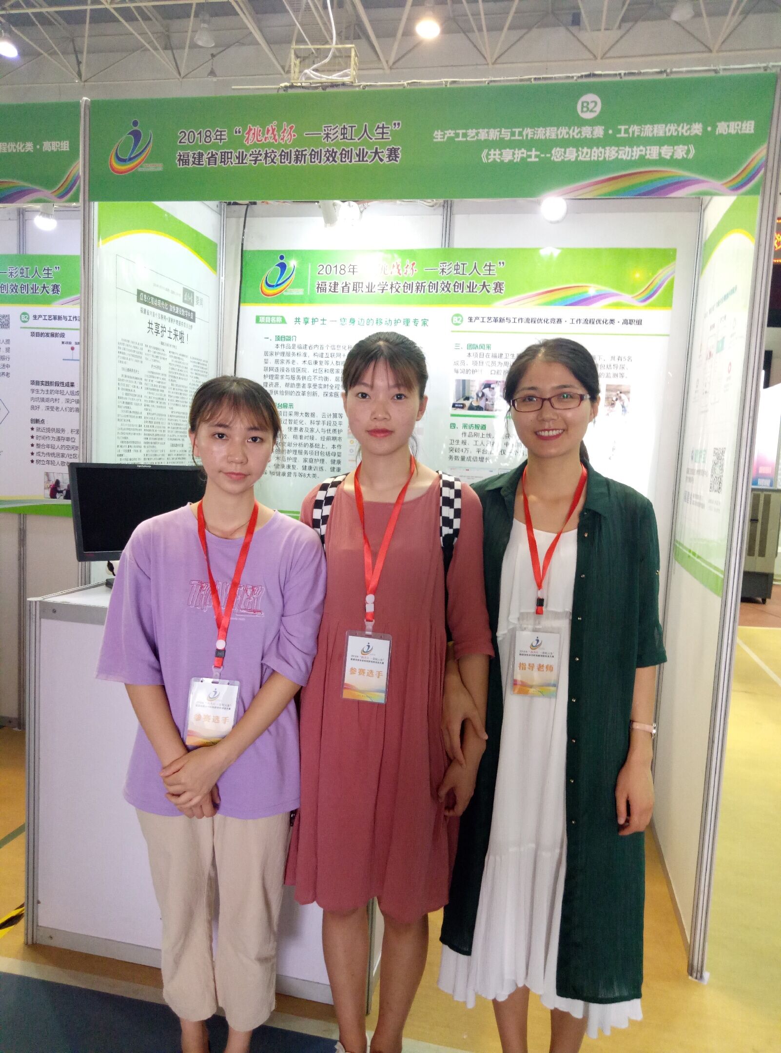 6月8日至9日,在泉州市舉辦2018年福建省職業(yè)學(xué)?!疤魬?zhàn)杯——彩虹人生”創(chuàng)新創(chuàng)業(yè)大賽,我系創(chuàng)新創(chuàng)業(yè)項(xiàng)目《共享護(hù)士——您身邊的移動(dòng)護(hù)理專家》榮獲高職組特等獎(jiǎng),項(xiàng)目負(fù)責(zé)人16級(jí)護(hù)理專業(yè)許燕玲,項(xiàng)目成員有17級(jí)護(hù)理專業(yè)連婉純和17級(jí)助產(chǎn)專業(yè)陳靜怡,項(xiàng)目指導(dǎo)老師為管理系李其鏗老師和我系吳婷婷老師。
