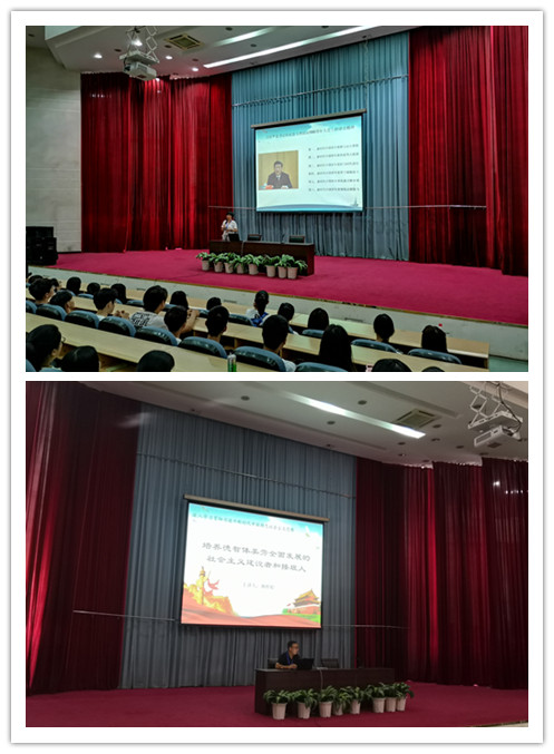 為深入學(xué)習(xí)貫徹習(xí)近平新時(shí)代中國(guó)特色社會(huì)主義思想,加強(qiáng)新生理想信念教育,弘揚(yáng)社會(huì)主義核心價(jià)值觀,扣好新生思想上的第一顆扣子,2019年9月8日上午,護(hù)理系黨總支謝濤書記和林桂松副書記在學(xué)術(shù)廳以“培養(yǎng)德智體美勞全面發(fā)展的社會(huì)主義建設(shè)者和接班人”為主題,分兩場(chǎng)為護(hù)理系新生上了一堂生動(dòng)的形勢(shì)與政策課。護(hù)理系新生班輔導(dǎo)員及2019級(jí)全體新生到場(chǎng)聆聽。