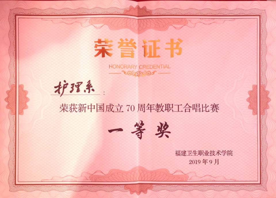 嘹亮的歌聲,喚起中華兒女的自豪和向往;優(yōu)美的旋律,奏響中華民族偉大復興的壯麗樂章。9月26日,“頌歌獻祖國”福建衛(wèi)生職業(yè)技術學院慶祝新中國成立70周年教職工合唱比賽在學術廳拉開帷幕,由各部門各系部組成的8支參賽隊伍用動聽的歌聲向祖國獻上最美好的祝福。經(jīng)過激烈角逐,護理系代表隊合唱的歌曲《彈起我心愛的土琵琶》、《年輕的朋友來相會》榮獲一等獎。