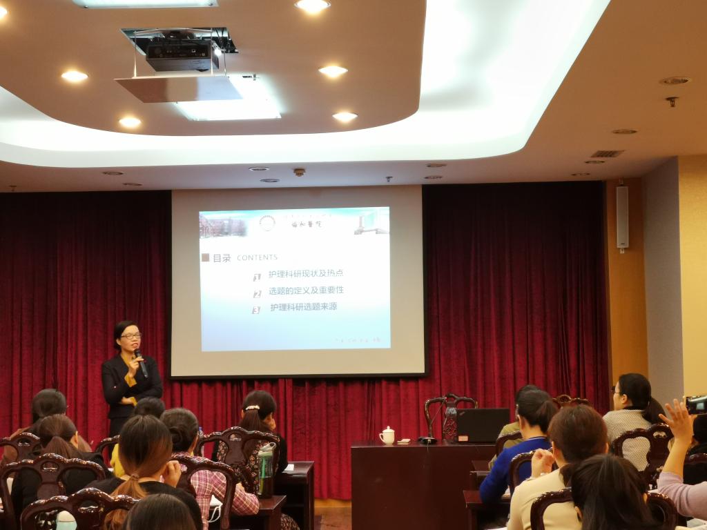 福建醫(yī)科大學(xué)附屬協(xié)和醫(yī)院護(hù)理部主任、福建省護(hù)理學(xué)會(huì)副理事長(zhǎng)林雁娟主任做了《護(hù)理科研選題》的講座,她結(jié)合自己豐富的臨床科研經(jīng)驗(yàn),分享了護(hù)理科研選題的定義及重要性和護(hù)理科研選題的來源,學(xué)員們紛紛表示收獲很大。