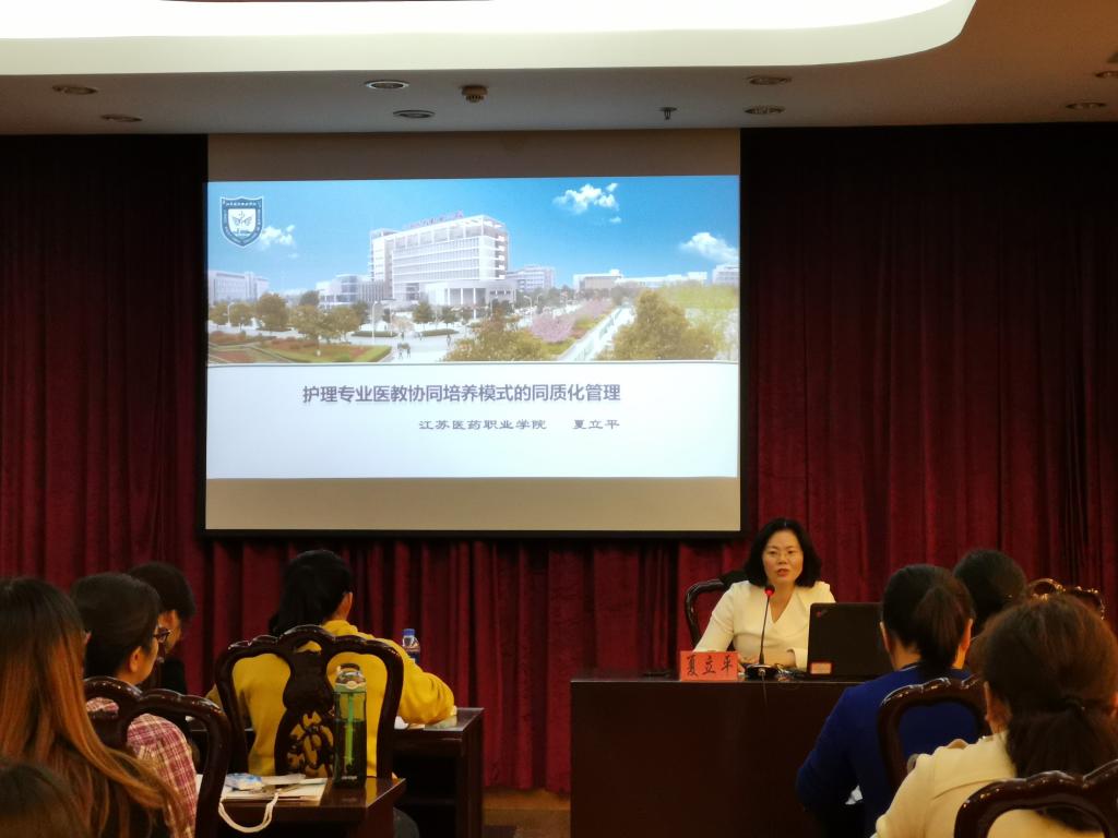 現(xiàn)任江蘇醫(yī)藥職業(yè)學(xué)院護(hù)理學(xué)院院長(zhǎng)、江蘇省教育廳優(yōu)秀教學(xué)團(tuán)隊(duì)帶頭人、江蘇省高校青藍(lán)工程中青年學(xué)術(shù)帶頭人夏立平教授做了《護(hù)理專業(yè)醫(yī)教協(xié)同培養(yǎng)模式的同質(zhì)化管理》的講座。夏立平教授指出護(hù)理工作中人文帶教的重要性,結(jié)合多年的教學(xué)經(jīng)驗(yàn),和學(xué)員們分享了醫(yī)教協(xié)同的培養(yǎng)模式、“五同”教學(xué)管理體系、合作共管的體制機(jī)制及三方共贏的效果分析,并與現(xiàn)場(chǎng)學(xué)員互動(dòng),氣氛熱烈,深受學(xué)員們愛戴。