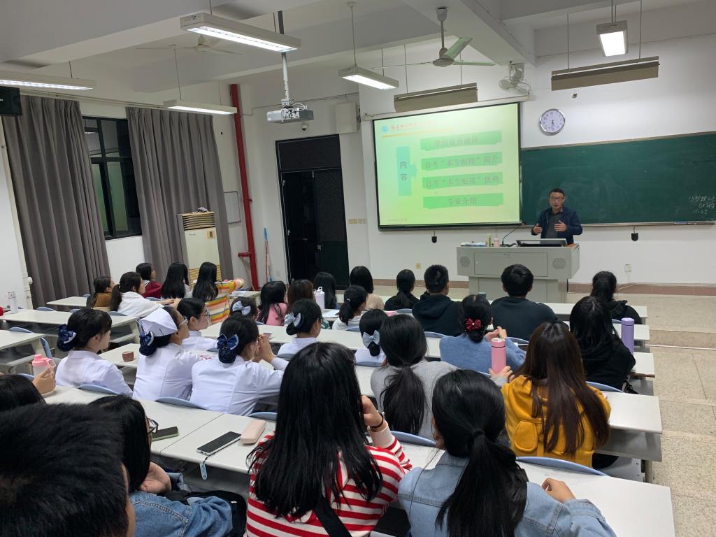 為幫助護理系學生深入了解“專科與本科銜接考試”政策,科學、合理、有效地規(guī)劃學習,引導同學們樹立學歷提升的自信心,福建衛(wèi)生職業(yè)技術學院護理系于11月27日在教學樓110舉辦了高等教育自學考試“??婆c本科銜接考試”護理專業(yè)專題講座。本次講座特邀護理系黨總支書記謝濤、副書記林桂松主講。