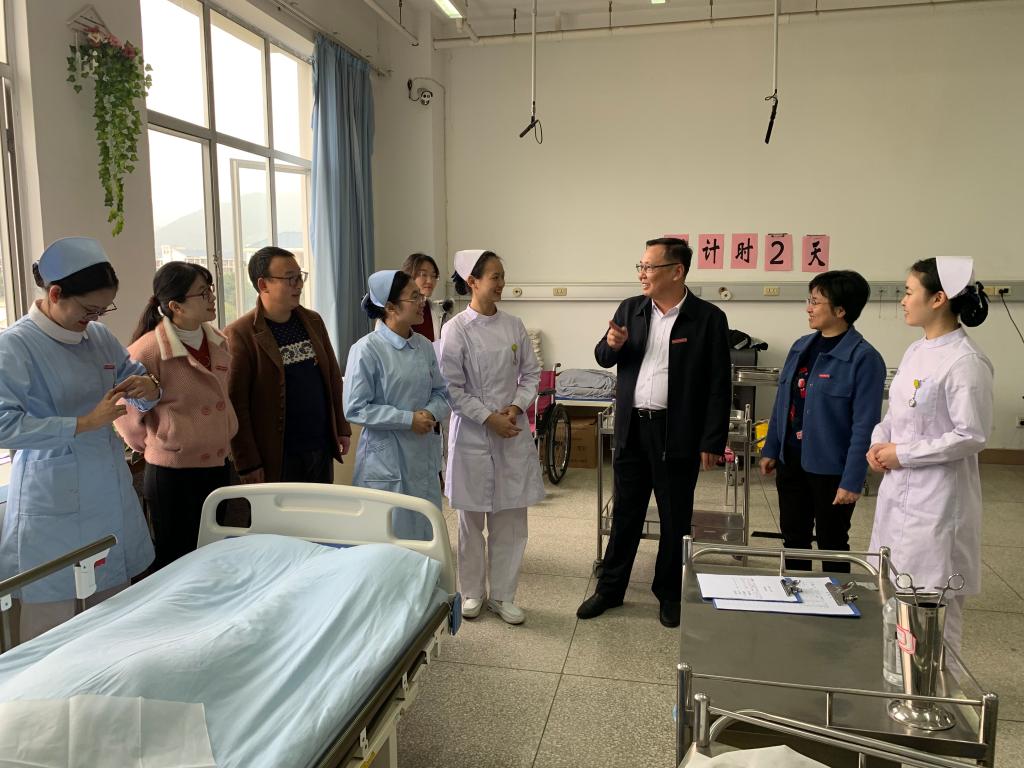 2019年12月18日下午,學(xué)校黨委曾武祈書記蒞臨護(hù)理系實(shí)訓(xùn)中心看望慰問參加2020年福建省護(hù)理技能競(jìng)賽的中職組和高職組的師生。