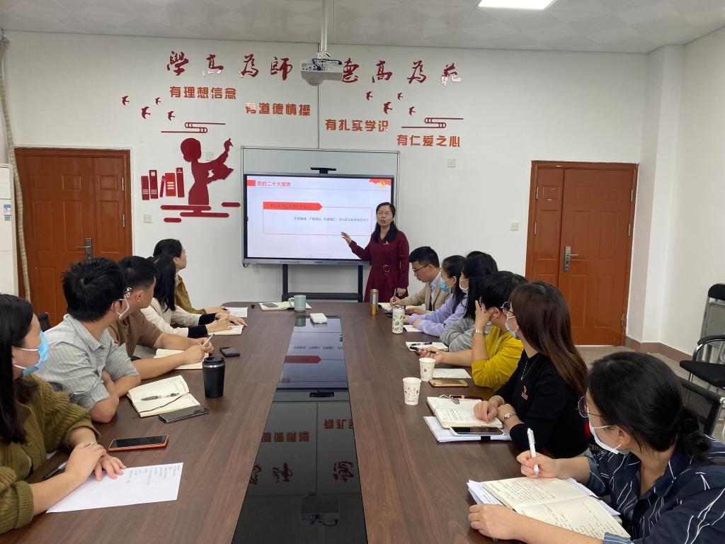 為深入學(xué)習(xí)宣傳貫徹黨的二十大精神,推動(dòng)黨的二十大精神入腦入心,引導(dǎo)青年教師感悟思想偉力、汲取奮進(jìn)力量,11月22日上午,我院院長、黨總支副書記龔海蓉為學(xué)生黨支部全體輔導(dǎo)員講授學(xué)習(xí)貫徹落實(shí)黨的二十大精神專題黨課——教輔一體 立德育人。