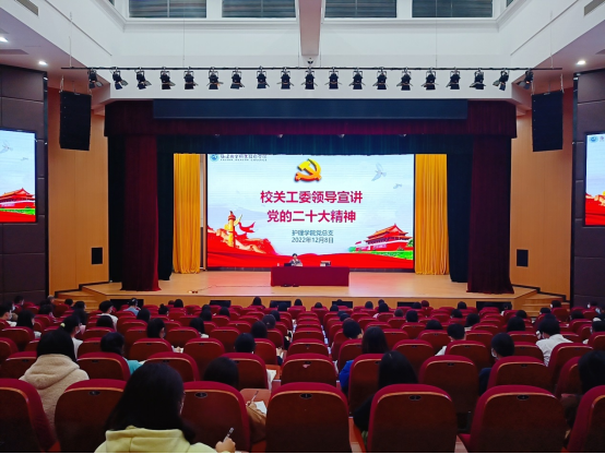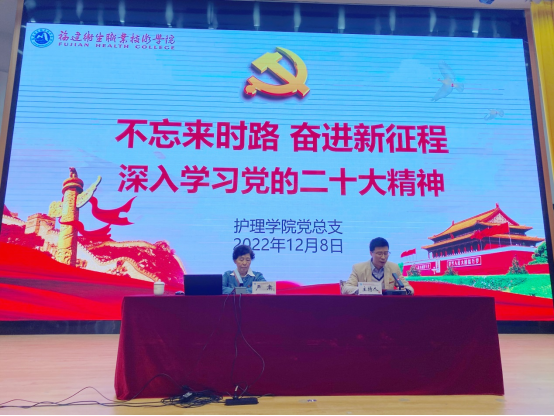 為深入學(xué)習(xí)貫徹黨的二十大精神,12月8日下午,護(hù)理學(xué)院黨總支開展“不忘來(lái)時(shí)路,奮進(jìn)新征程”主題活動(dòng)。本次活動(dòng)有幸邀請(qǐng)到校關(guān)工委主任嚴(yán)肅、副主任陳雄作為主講嘉賓,護(hù)理學(xué)院師生代表和組織統(tǒng)戰(zhàn)部、人事處、財(cái)務(wù)處共計(jì)200余人現(xiàn)場(chǎng)參加宣講會(huì),護(hù)理學(xué)院其他師生通過(guò)線上收聽收看宣講報(bào)告。