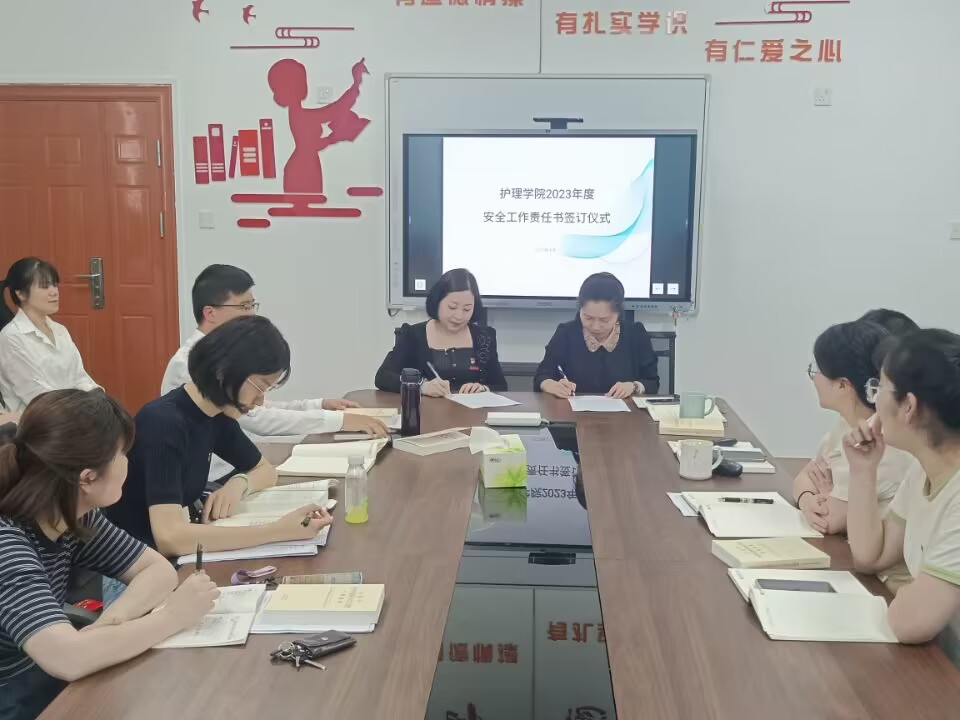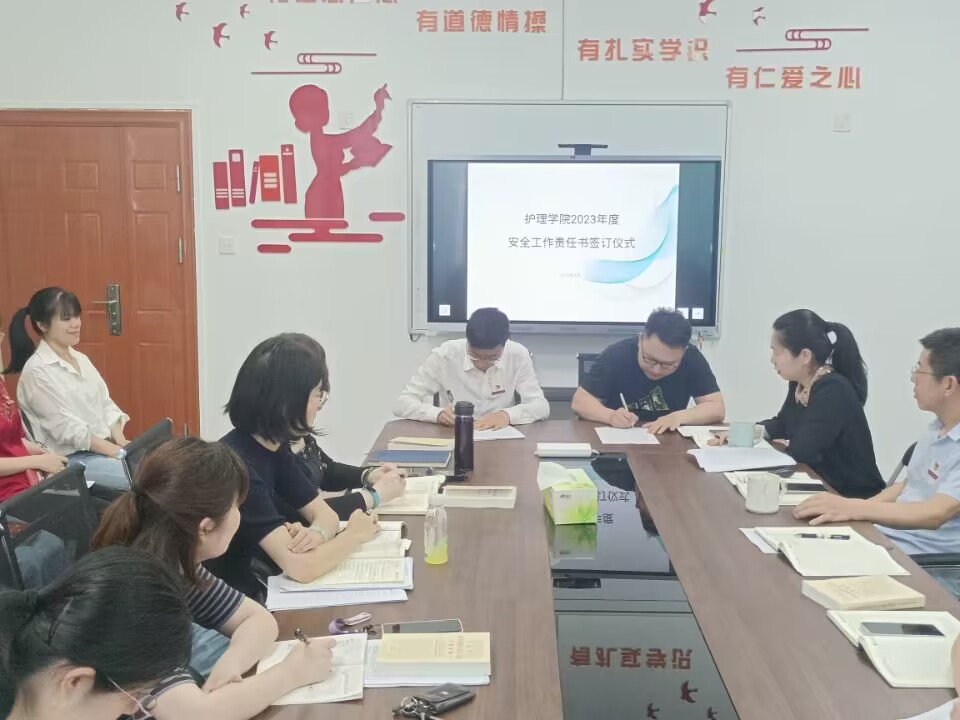 最后,龔海蓉與各教研室主任、林來(lái)元與各輔導(dǎo)員分別簽訂《護(hù)理學(xué)院2023年教研室安全工作責(zé)任書(shū)》、《護(hù)理學(xué)院2023年學(xué)生安全穩(wěn)定工作責(zé)任書(shū)》,做到層層壓實(shí)安全責(zé)任,層層傳導(dǎo)工作要求,推動(dòng)安全責(zé)任落地落實(shí)落細(xì)。