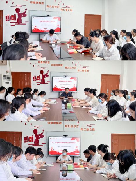 實(shí)習(xí)班輔導(dǎo)員卓立濤以學(xué)生下臨床實(shí)習(xí)的心理情緒變化為重點(diǎn),講述學(xué)生在實(shí)習(xí)過(guò)程中會(huì)遇到學(xué)習(xí)、就業(yè)、人際關(guān)系等方面的壓力,引導(dǎo)學(xué)生在實(shí)習(xí)中應(yīng)積極應(yīng)對(duì)困難,注重培養(yǎng)醫(yī)護(hù)技能。