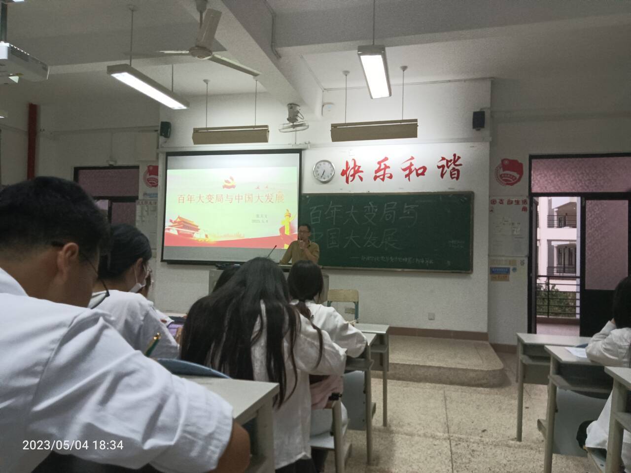 為激勵畢業(yè)生黨員堅定理想信念、厚植愛黨愛國情懷,以良好的精神風(fēng)貌踏入新的征程,2023年5月4日,馬克思主義學(xué)院學(xué)院張?zhí)煳睦蠋煘樽o(hù)理學(xué)院黨總支分黨校第三期培訓(xùn)班講授“百年大變局與中國大發(fā)展”主題黨課。護(hù)理學(xué)院全體入黨積極分子參加本次黨課。