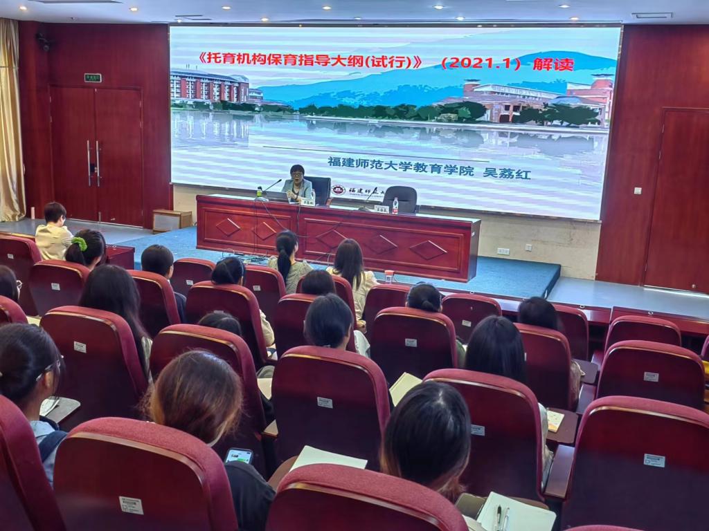 2023年6月16日上午,護理學院邀請福建師范大學教育學院吳荔紅教授開展《托育機構(gòu)保育指導大綱(試行)解讀》專題講座。本次講座由護理學院院長龔海蓉主持,護理學院教師及嬰幼兒托育服務與管理專業(yè)學生聆聽了此次講座。