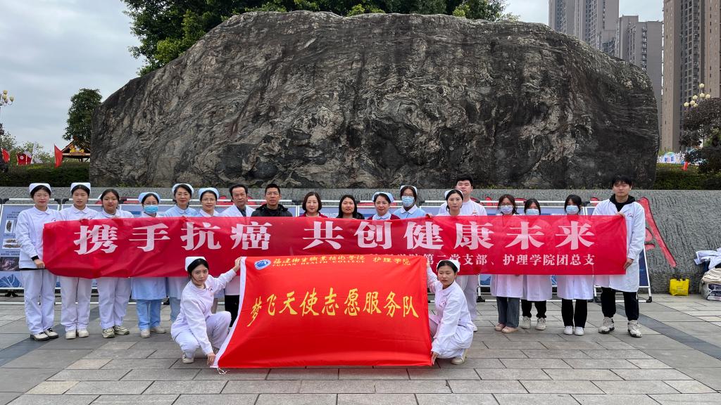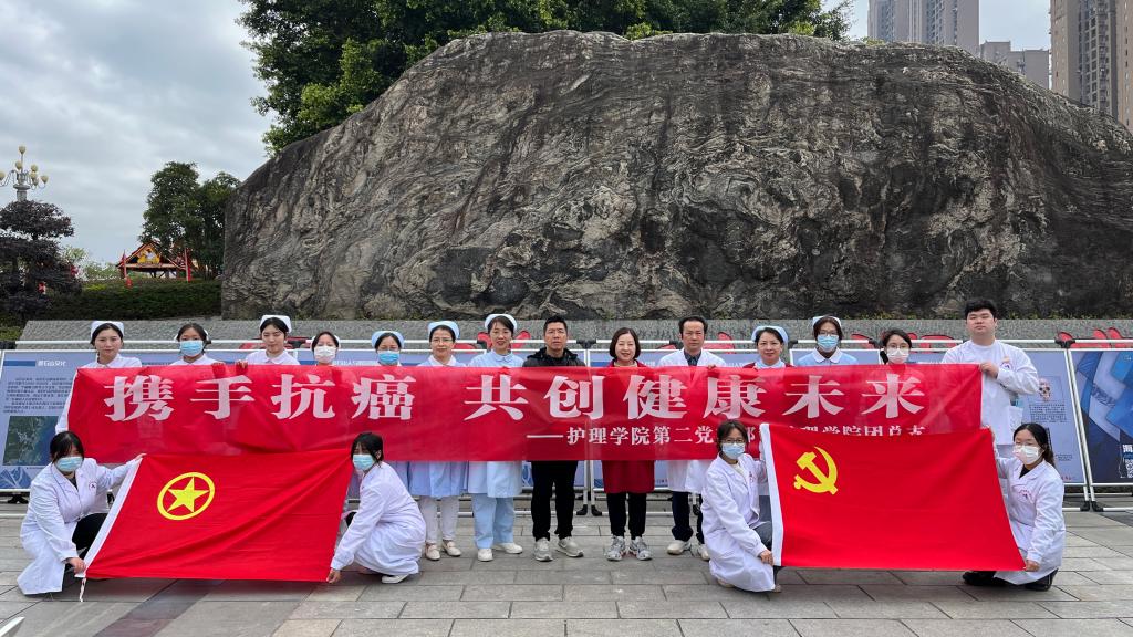 在活動(dòng)現(xiàn)場(chǎng),護(hù)理學(xué)院第二黨支部帶領(lǐng)師生向現(xiàn)場(chǎng)居民發(fā)放抗癌防癌健康宣傳知識(shí)手冊(cè),為居民們宣講肺癌、食管癌、乳腺癌等常見癌癥防治的科學(xué)知識(shí)和預(yù)防措施,并針對(duì)這些常見癌癥的病因、癥狀和早期發(fā)現(xiàn)方法進(jìn)行具體分析,鼓勵(lì)帶病居民樂觀積極面對(duì)疾病。