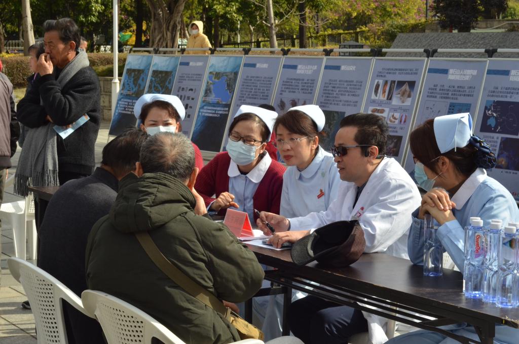 為幫助社區(qū)居民建立健康的生活方式,普及肺癌、食管癌、乳腺癌等常見癌癥防治知識(shí),1月17日,護(hù)理學(xué)院第二黨支部攜手福建曇石山博物與校團(tuán)委、護(hù)理學(xué)院團(tuán)總支赴閩侯縣民俗園聯(lián)合開展“攜手抗癌,共創(chuàng)健康未來(lái)”防癌、抗癌知識(shí)宣講和健康義診活動(dòng)。本次活動(dòng)特邀福建省腫瘤醫(yī)院胸外科黃毅雄主任醫(yī)師坐診,護(hù)理學(xué)院愛心天使抗癌宣講團(tuán)、醫(yī)學(xué)院中醫(yī)康復(fù)專業(yè)志愿服務(wù)隊(duì)參加本次活動(dòng)。