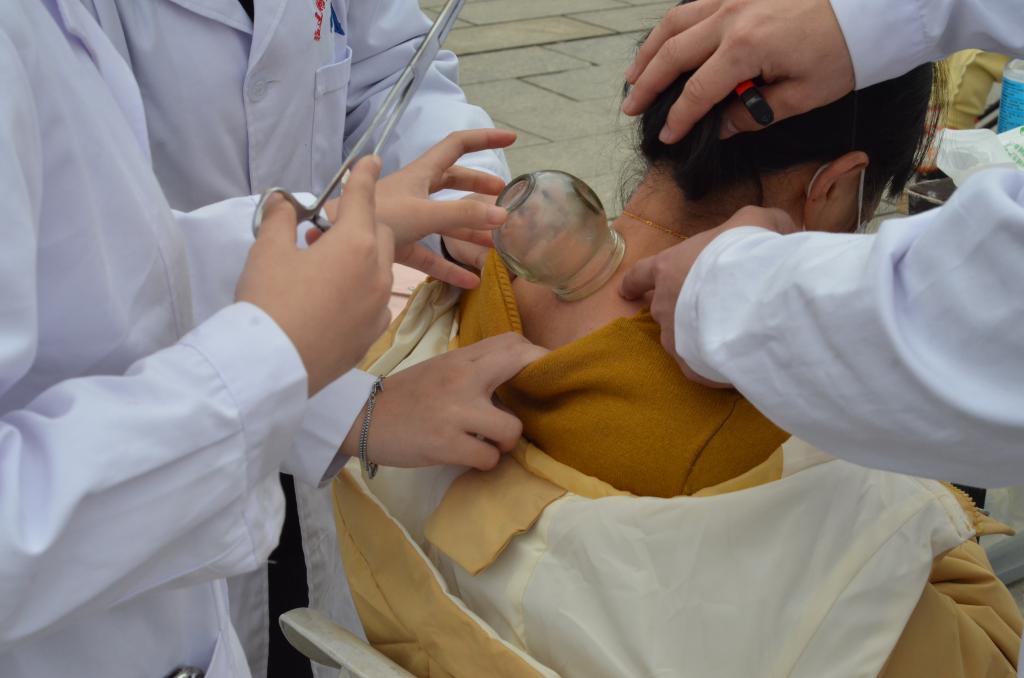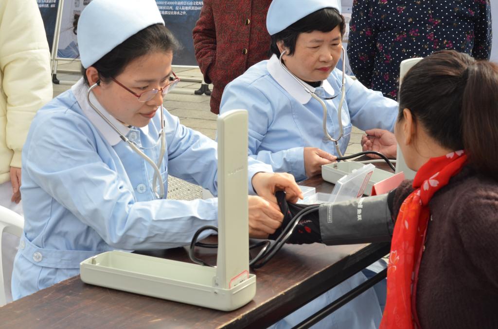 活動(dòng)中,黨員教師帶領(lǐng)學(xué)生志愿服務(wù)隊(duì)成員耐心地為居民測(cè)血壓、量血糖、推拿、拔罐,普及高血壓和糖尿病等慢性病的防治知識(shí)。