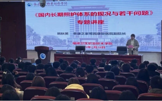 2024年2月28日上午,護(hù)理學(xué)院邀請?zhí)┛抵寅槇@養(yǎng)老服務(wù)&康復(fù)醫(yī)院有限公司/主任護(hù)師韓秋英教授開展《國內(nèi)長期照護(hù)體系的現(xiàn)況與若干問題》專題講座。本次講座由護(hù)理學(xué)院院長肖春秀主持,護(hù)理學(xué)院教師及老年保健與管理專業(yè)學(xué)生聆聽了此次講座。