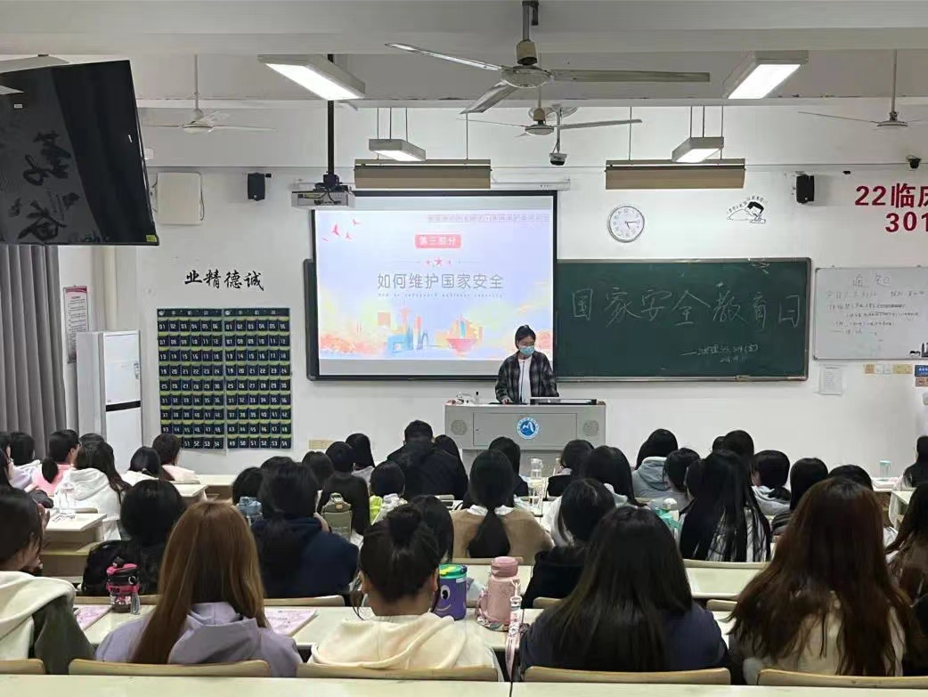 讓同學(xué)們明確今年“全民國(guó)家安全教育日”的主題:堅(jiān)持總體國(guó)家安全觀,著力防范化解重大風(fēng)險(xiǎn)。向同學(xué)們講述了國(guó)家安全法中,與我們生活密切相關(guān)的問題,如糧食安全、文化安全、信息安全、打擊邪教、防恐、社會(huì)安全、生態(tài)安全等等。安全無(wú)小事,責(zé)任重于泰山。在這個(gè)特殊的日子里與護(hù)理學(xué)院攜手守護(hù)國(guó)家安全!