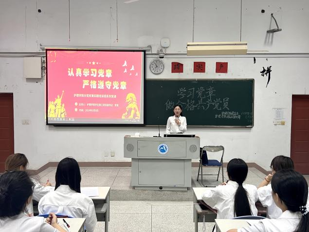 5月8日晚,護(hù)理學(xué)院學(xué)生第三黨支部書記李英以“認(rèn)真學(xué)習(xí)黨章,嚴(yán)格遵守黨章”為題向護(hù)理學(xué)院黨總支分黨校第四期培訓(xùn)班的學(xué)員進(jìn)行集中授課。