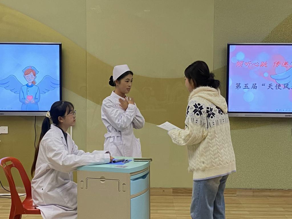 在繁忙的醫(yī)療環(huán)境中,護(hù)士與患者之間的溝通往往顯得尤為關(guān)鍵。一句溫暖的話語,一個(gè)真誠的眼神,都可能成為患者康復(fù)路上的重要支撐。它讓我們看到,護(hù)理溝通不僅僅是傳遞信息,更是傳遞愛與希望的力量。天使學(xué)堂功能型團(tuán)支部12月12日在護(hù)理學(xué)院102教室舉辦第五屆“天使風(fēng)采”禮儀大賽——“傾聽心跳,傳遞溫暖”。本次大賽邀請護(hù)理學(xué)院第一支部黨員教師擔(dān)任評委。